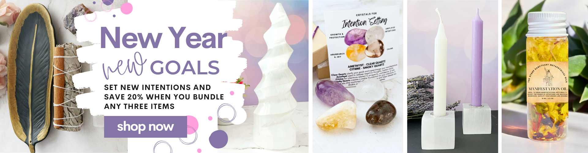 Transform your space into a sanctuary of peace and positivity with our selection of Gemstone Table Chimes, Smudge Sticks, and Selenite. Table Chimes are perfect for attracting good fortune and enhancing the flow of energy in your environment. Smudge Sticks, traditionally used in spiritual practices, effectively cleanse your space of negative energies, creating a harmonious atmosphere. Selenite, known for its powerful cleansing abilities, purifies your surroundings and amplifies the energy of other crystals. Keep the positive vibes flowing and elevate your spiritual practice with these essential tools.