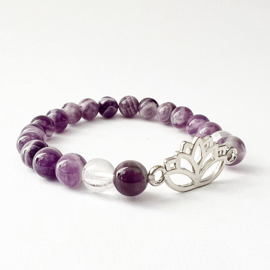 8mm Chevron Amethyst Beaded Bracelet with Lotus Charm