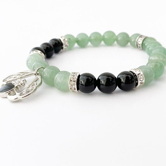 8mm Green Aventurine & Onyx Beaded Bracelet with Claddagh Charm