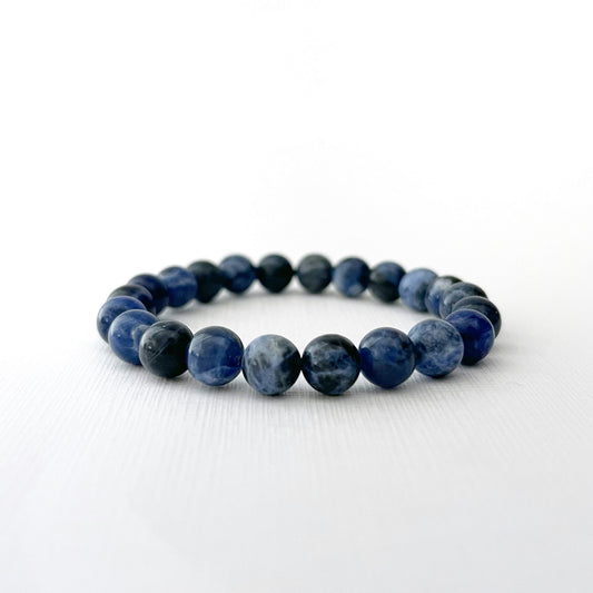 8mm Hematite & Sodalite Beaded Bracelet with Pentacle Charm