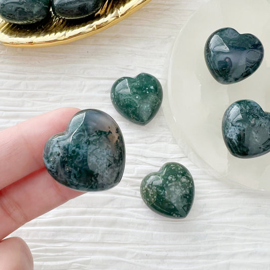 1" Mini Green Moss Agate Crystal Heart