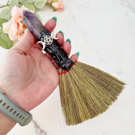 7.5" Triple Moon, Pentagram & Amethyst Small Besom