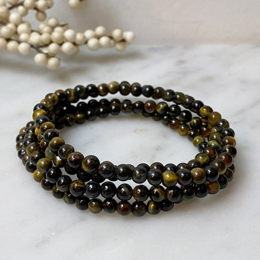 4mm Blue Tiger's Eye Beaded Bracelet