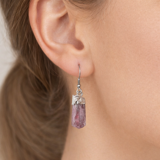 Raw Pink Tourmaline Point Dangle Earrings