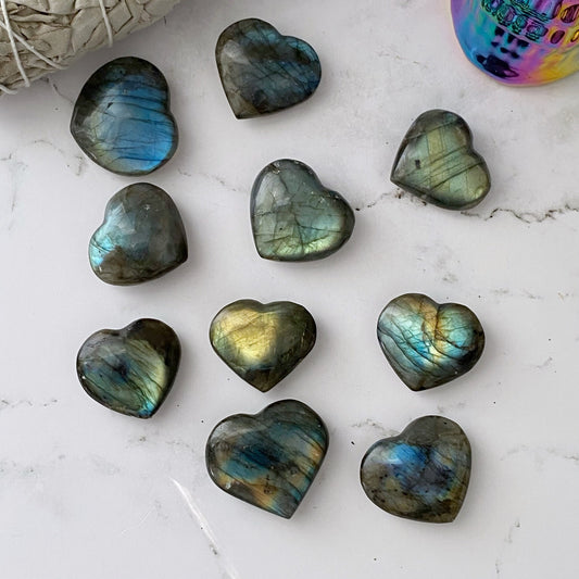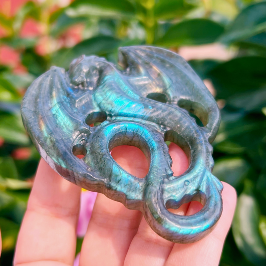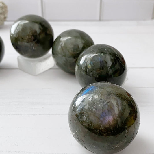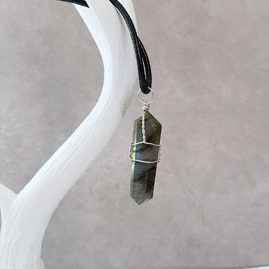 8mm Labradorite & Black Tourmaline Beaded Bracelet w/ Wolf Charm