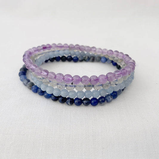 8mm Hematite & Amethyst Beaded Bracelet with Pentacle Charm