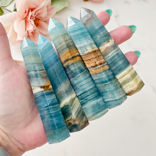 4" Blue Onyx Point (Lemurian Aquatine Calcite)