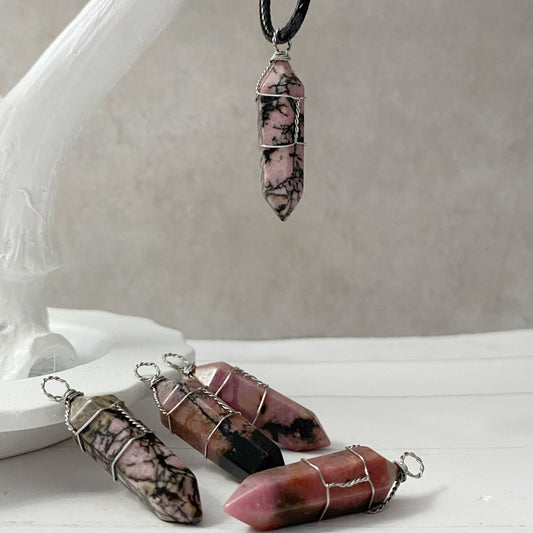 1.5" Double Terminarted Rhodonite Point Pendant