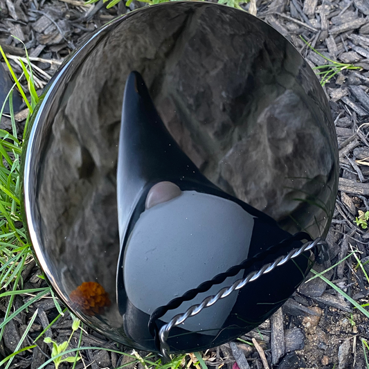 6.5" Black Obsidian Scrying Mirror with Black Tourmaline