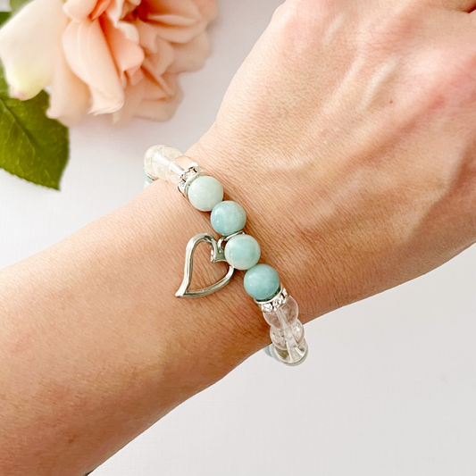 8mm Amazonite Beaded Bracelet with Silver Heart Charm