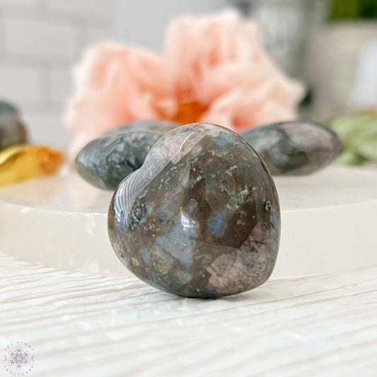 2" Hematite Heart Palm Stone
