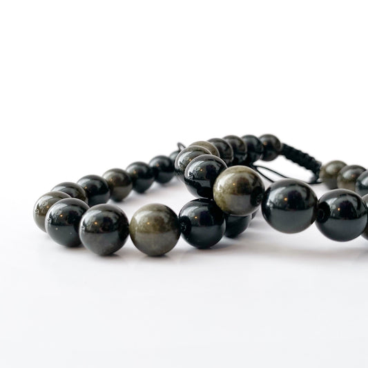 Adjustable 10mm Gold Sheen Obsidian Beaded Bracelet