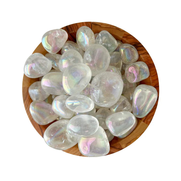 Angel Aura is high vibe crystal that you can feel the energy radiate from. It will fill you with joy, happiness, and uplifting energy. It's the perfect crystal to use when one feels down. It provides a protective shield around one's aura that provides inner peace, mental clarity, heightened knowing, and serenity. It will bringjoy to you even on your worst days.