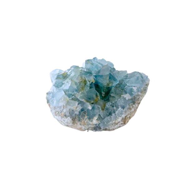 Celestite, also known as celestine, is a beautiful and delicate mineral that typically forms in clusters of blue or colorless crystals. It can also appear in shades of white, yellow, or pink. Celestite's name is derived from the Latin word "caelestis," meaning "heavenly," which reflects its ethereal appearance and the high-vibration energy it is believed to possess.
