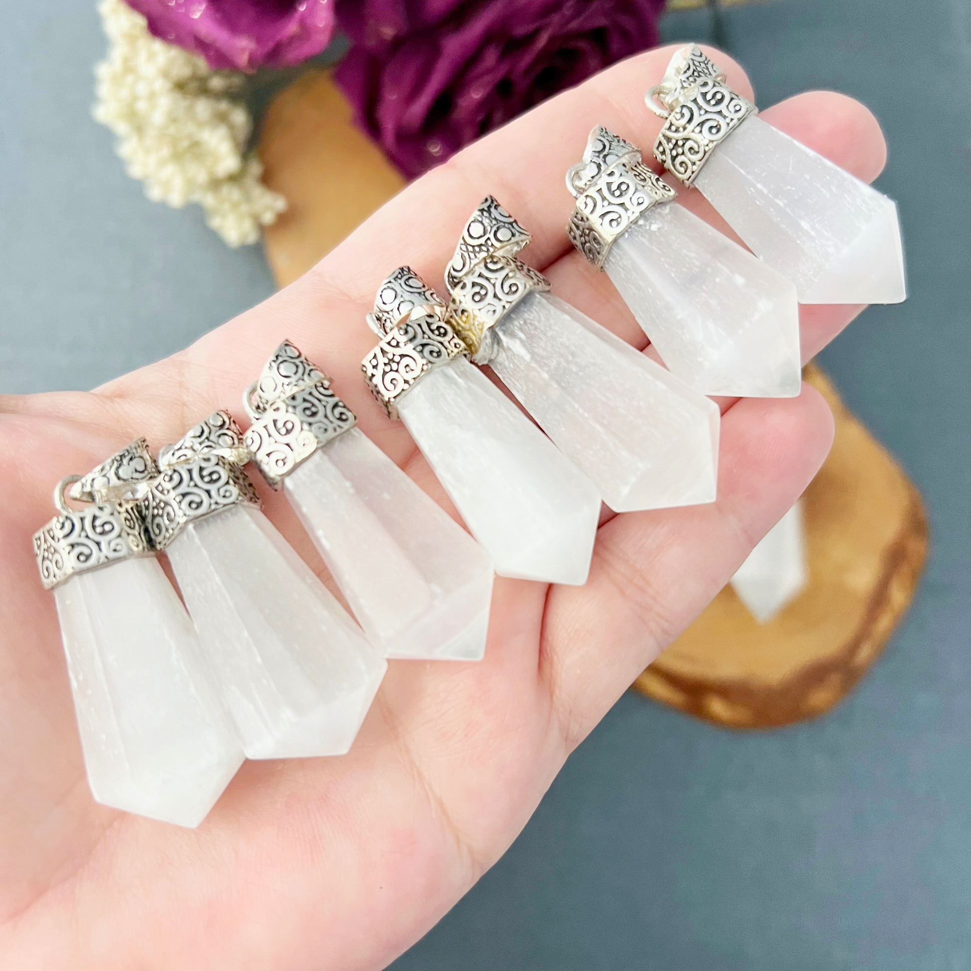 Whether you're grounding yourself before a busy day or seeking a calming energy boost, this Selenite point pendant is a must-have. Elevate your style and spirit with this captivating piece. Wear it daily to harness its serene energy and let it be a reminder of the light and clarity you carry within.