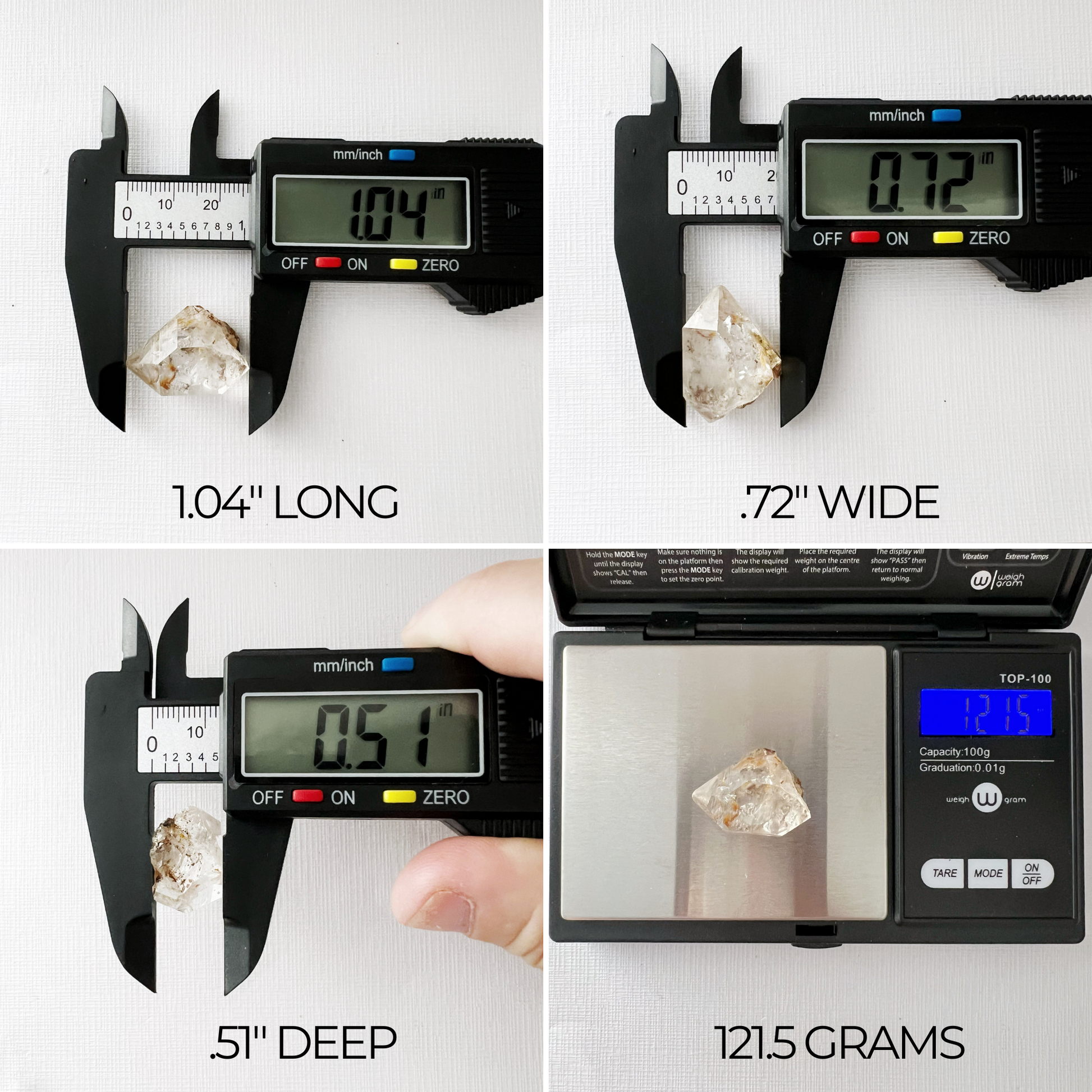 Experience the beauty and power of nature with our 1" Raw Herkimer Diamond. This Grade A+ genuine natural Herkimer diamond quartz crystal weighs 8 grams and measures 26x18x12mm.