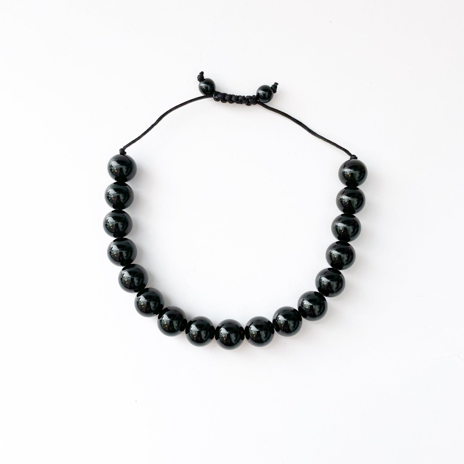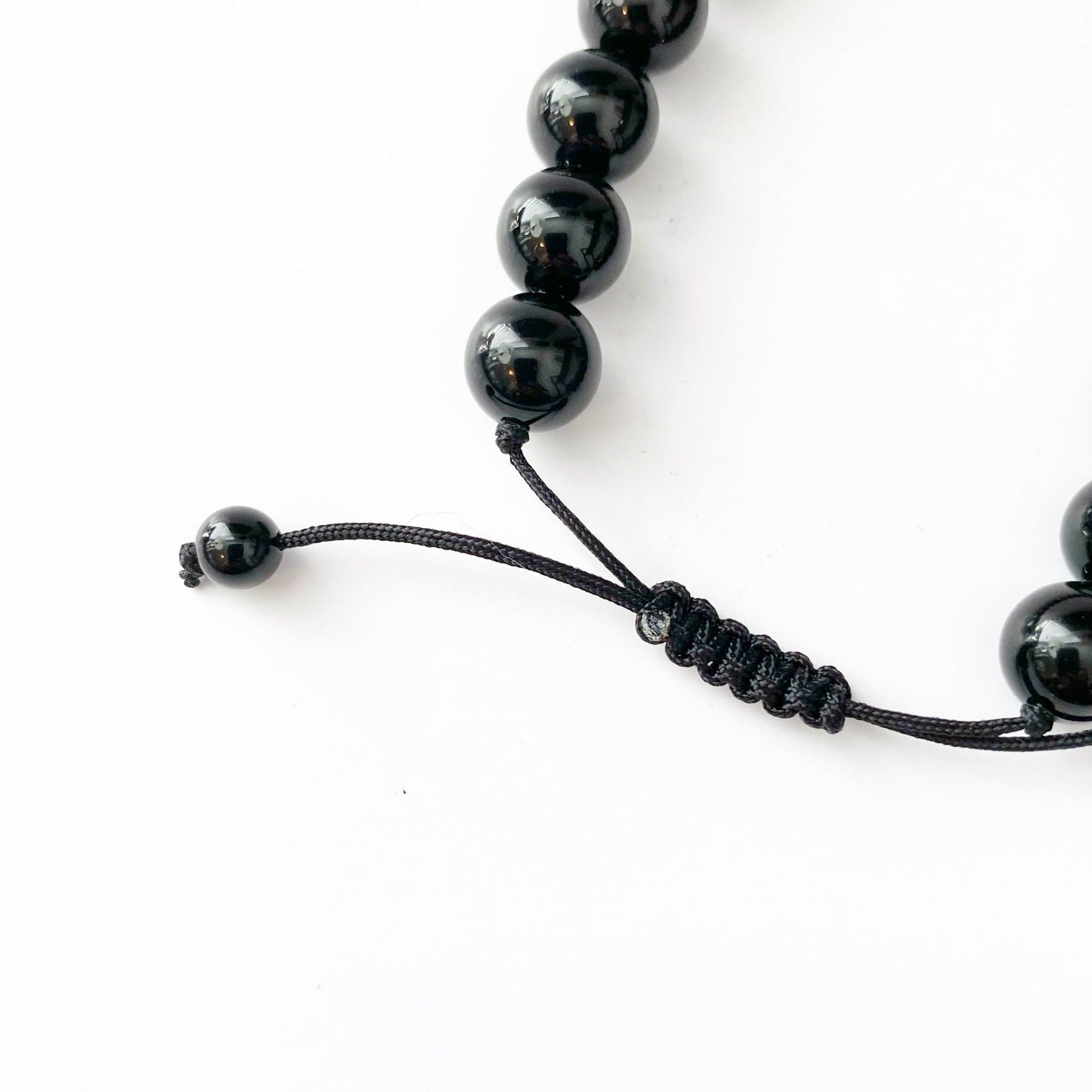 Embrace the protective and grounding energies of Obsidian with your very own adjustable Black Obsidian beaded bracelet. Each bracelet is thoughtfully crafted from 17 polished Obsidian beads, each measuring 10mm in diameter, strung together in a harmonious circle of strength and beauty. The adjustable design features sliding end beads, allowing for a custom fit that comfortably accommodates wrist sizes from Small to X-Large (6 inches to about 9.5 inches), ensuring a perfect fit for both men and women.