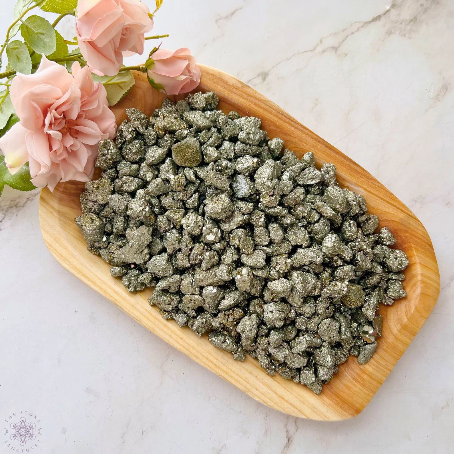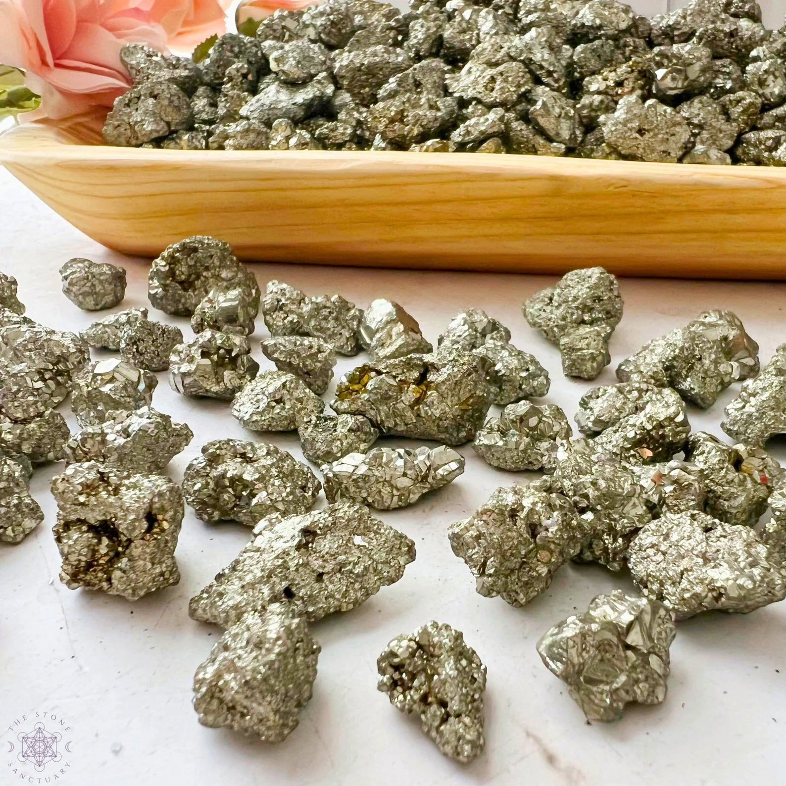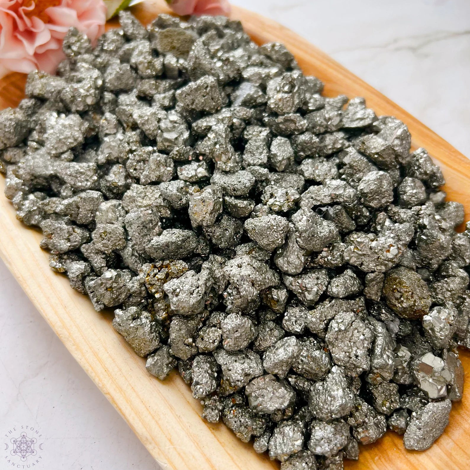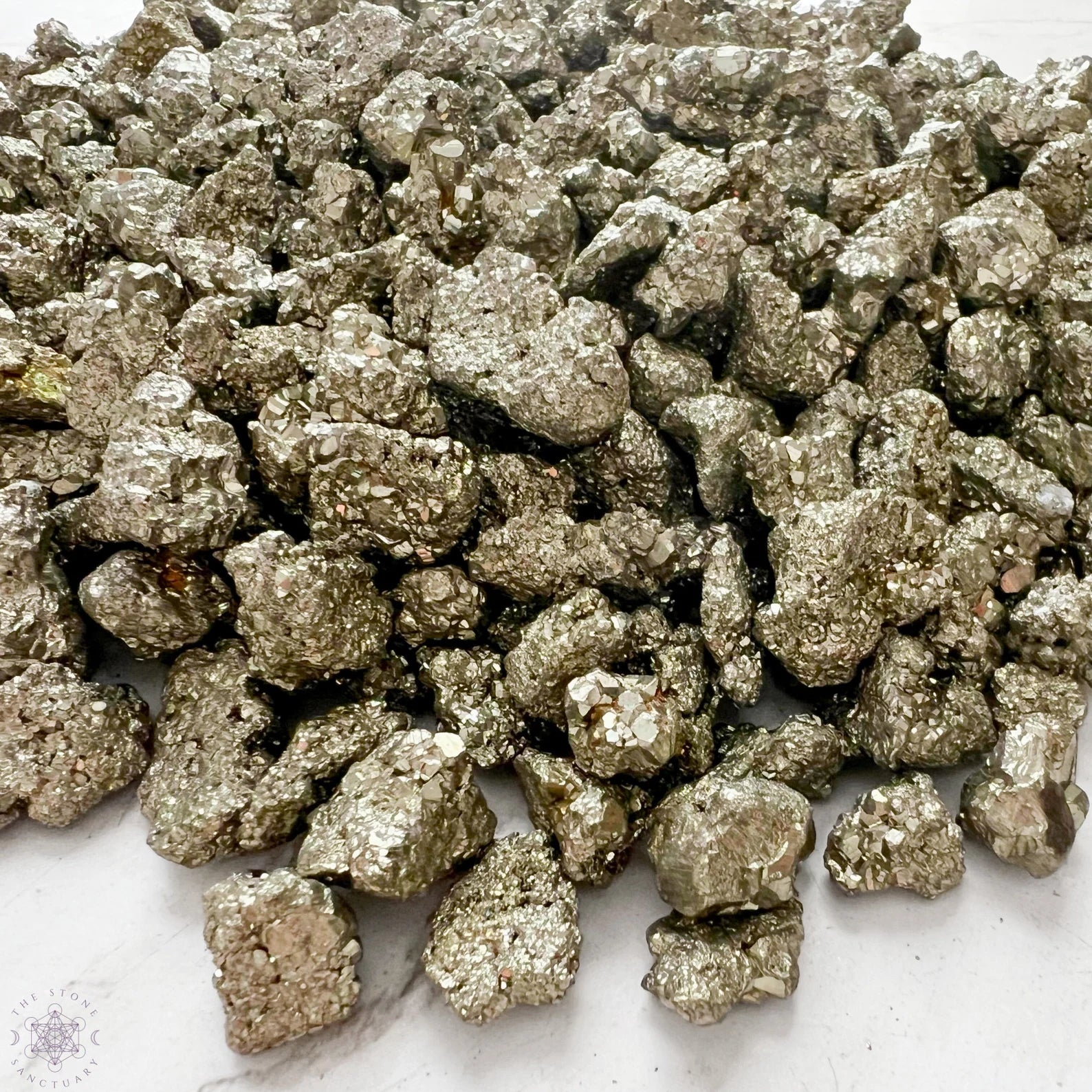 Pyrite Crystal Chips are raw and unpolished tiny stones. These mini stones are perfect for various creative and mystical endeavors. Whether you're into candle making, adding to your roller ball oils, crafting, or creating resin jewelry, these chips add a touch of natural energy to your projects. They're also ideal for spell jars, mojo bags, witch balls, orgone devices, and as sacred additions to your altar jars.