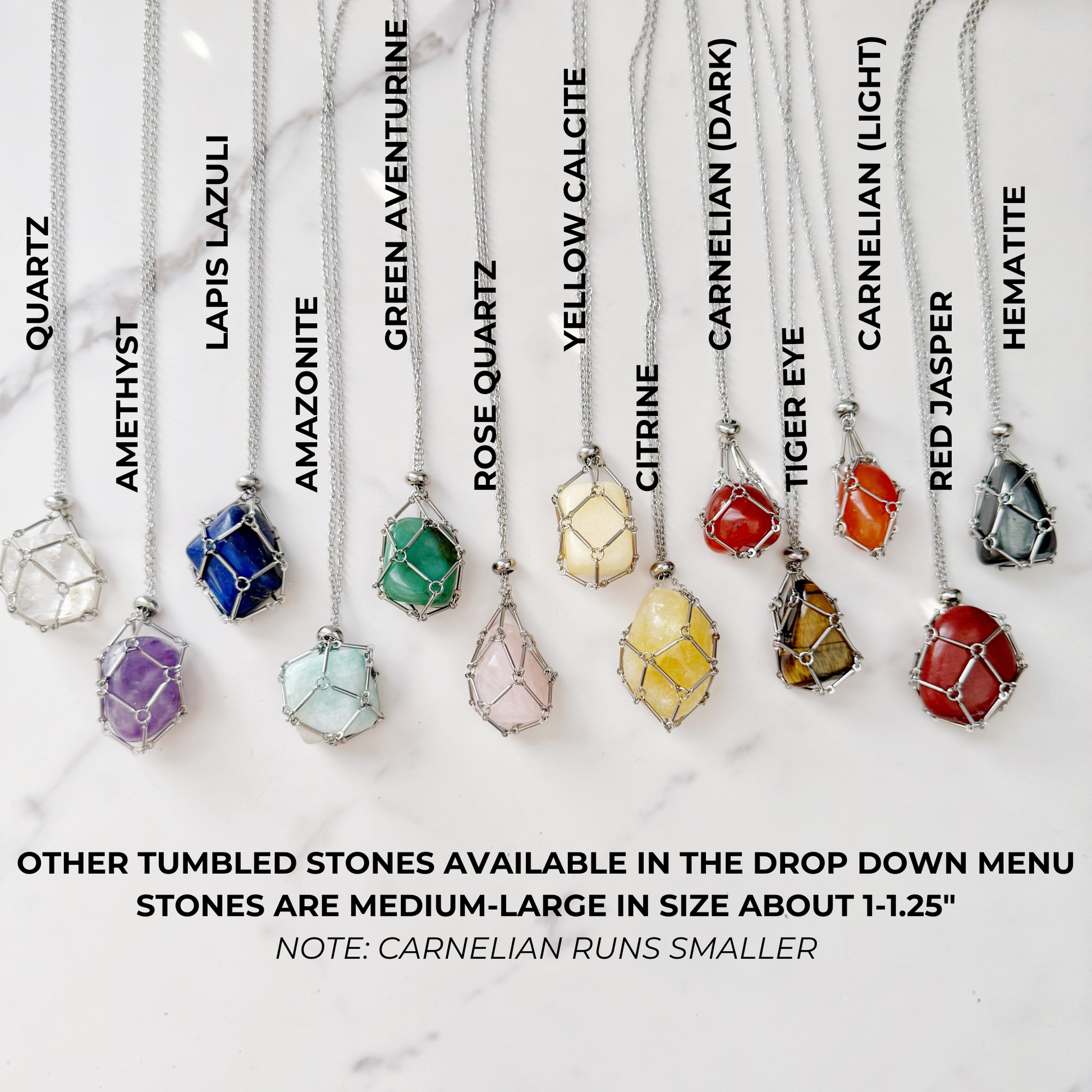 Crystal Options: Choose from a selection of tumbled stones, including Amethyst, Lapis Lazuli, Rose Quartz, Citrine, and many more. Each crystal is carefully selected for its quality and energetic properties.