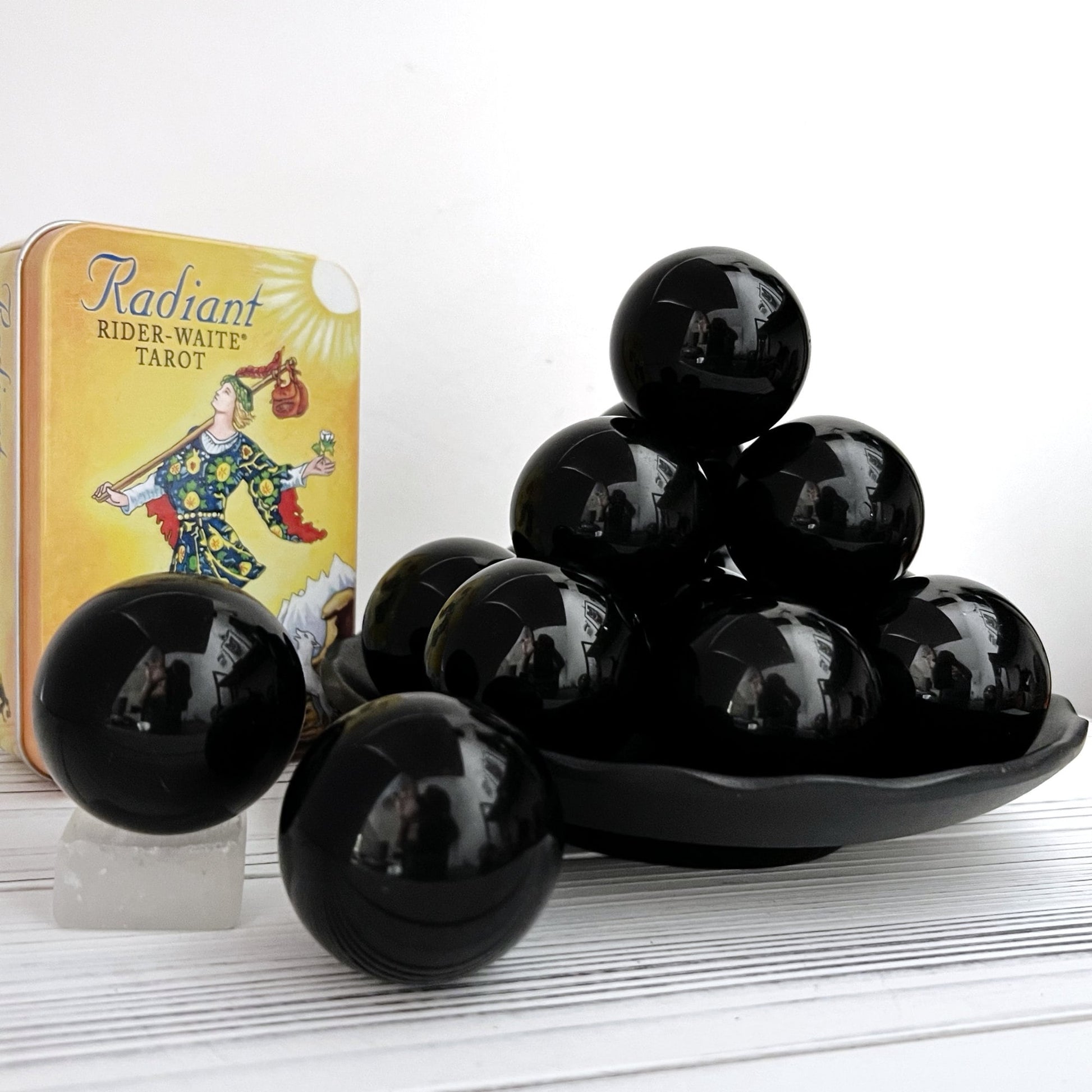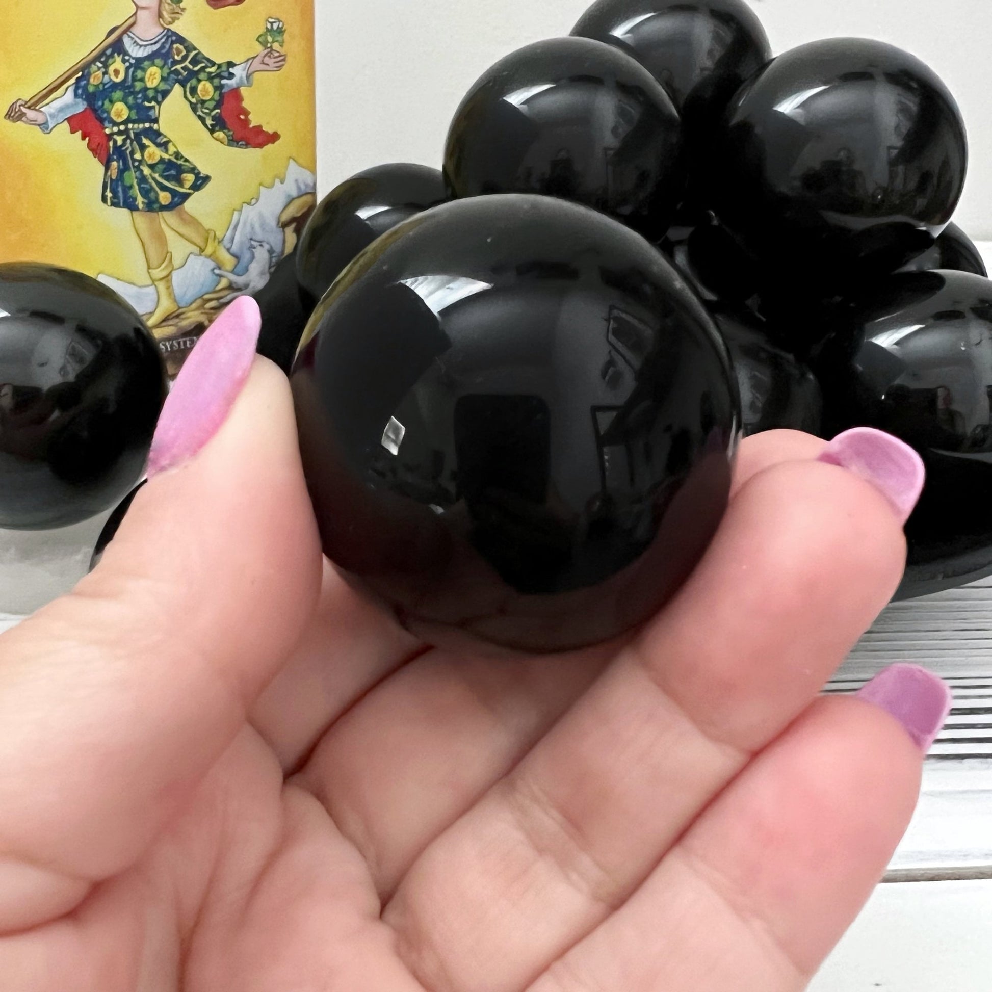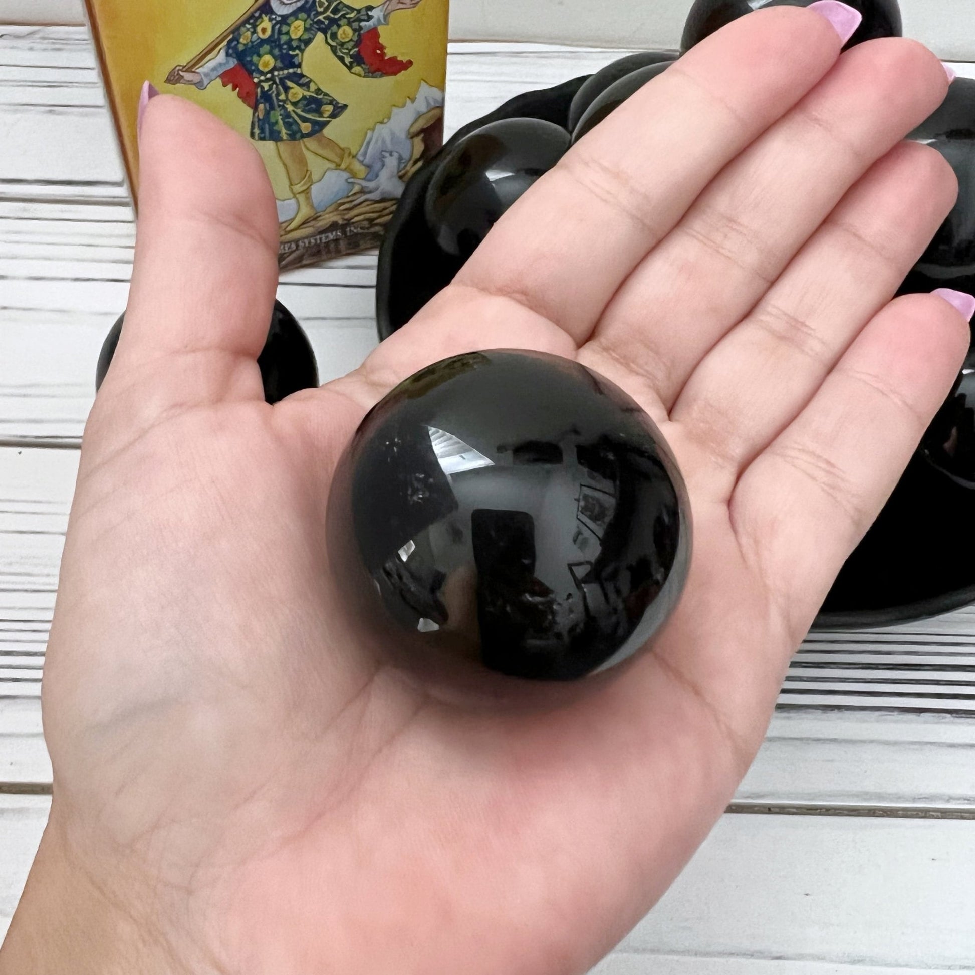 You will receive one intuitively selected Obsidian Crystal Ball, a captivating orb of pure volcanic glass measuring approximately 40mm (about 1.5 inches) in diameter. This sphere is not just a striking decorative piece; it's a powerful tool in spiritual and healing practices, chosen specifically to resonate with your energy.