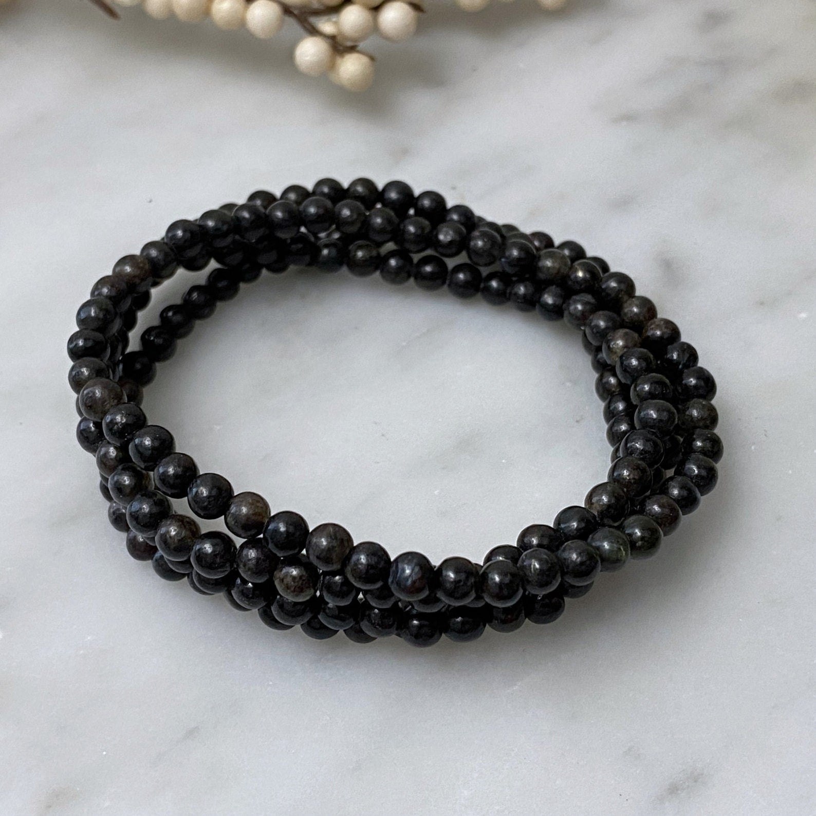 Immerse yourself in the ethereal energy of our Astrophyllite energy bracelet. Each bracelet features a string of polished 4mm Astrophyllite beads, lovingly infused with the powerful properties of this mesmerizing crystal. With a comfortable, stretchable design, these bracelets are perfect for wrists measuring 7-7.25 inches.