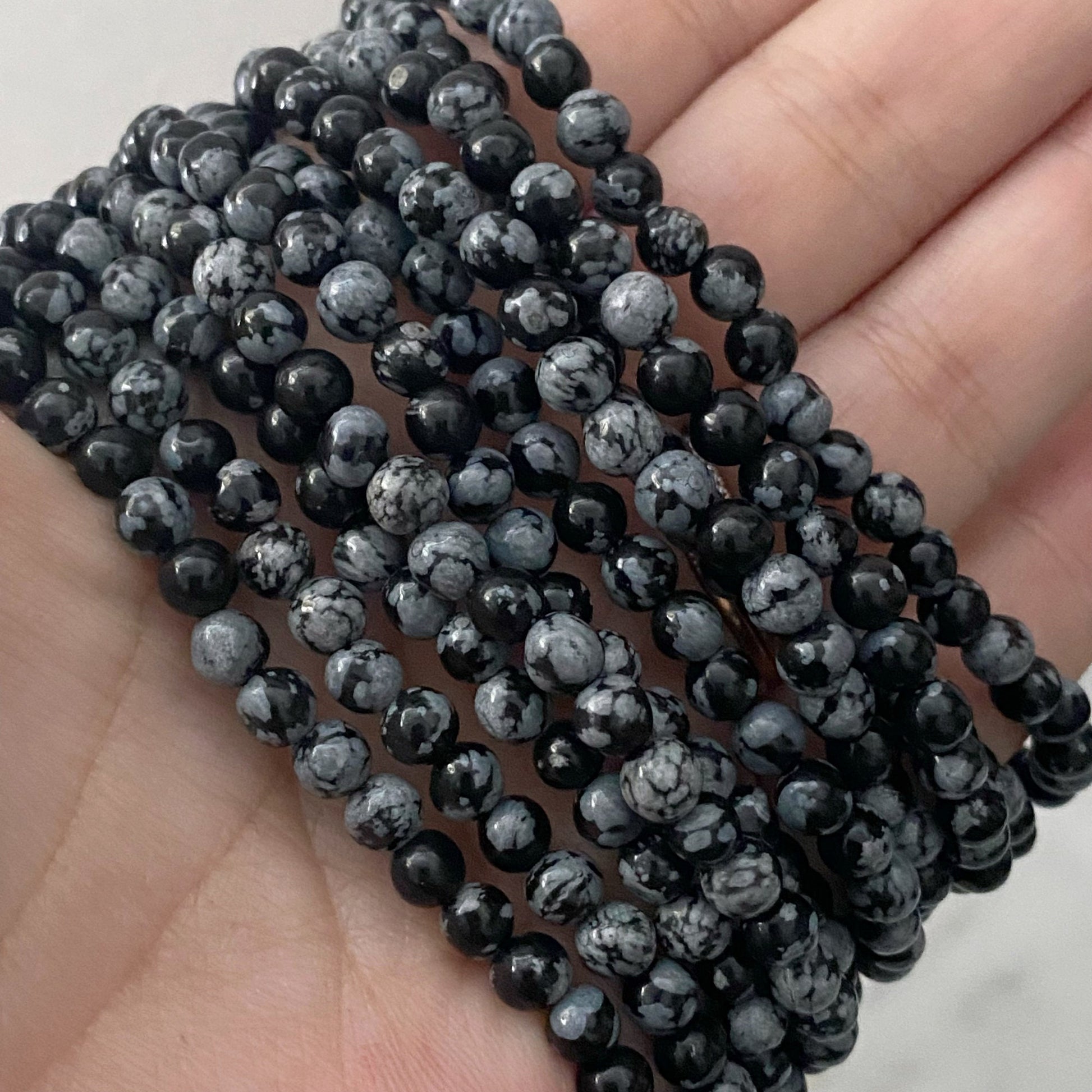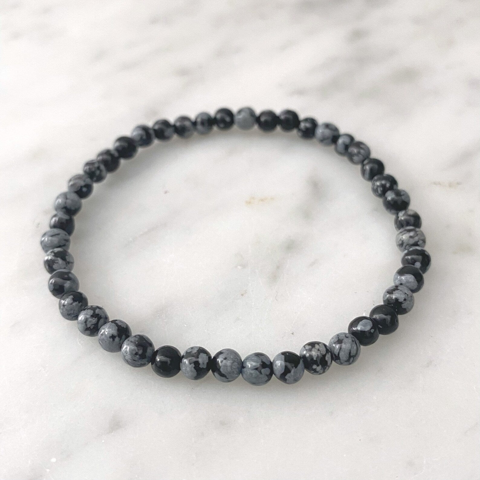 4mm Snowflake Obsidian Beaded Bracelet