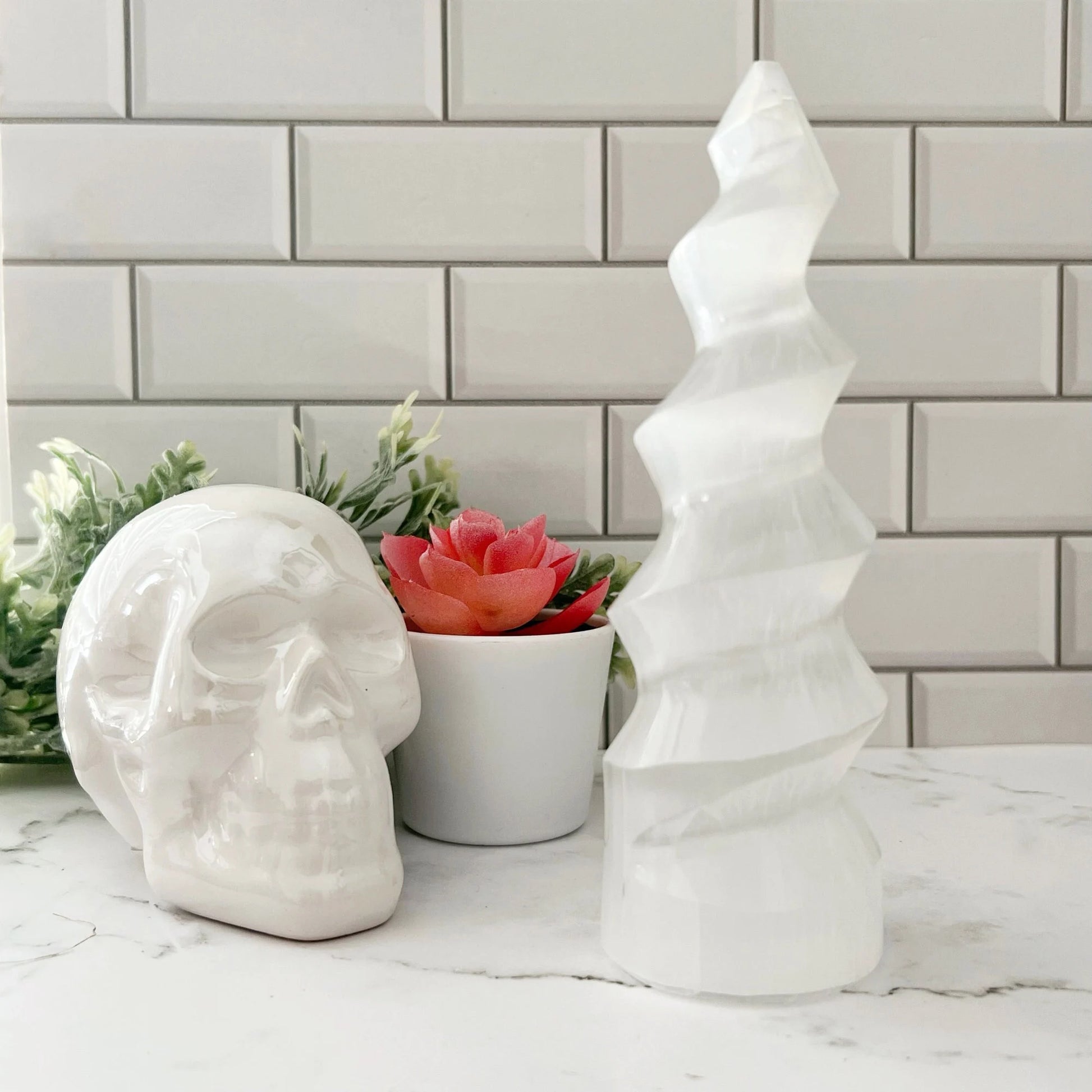 This hand-polished Selenite Twist Tower features a beautifully spiraled design that gives the illusion of energy rising upward in motion. Unlike traditional straight towers, the twisted carving adds dimension, texture, and visual flow — making it both a powerful energetic tool and a statement piece for your space.