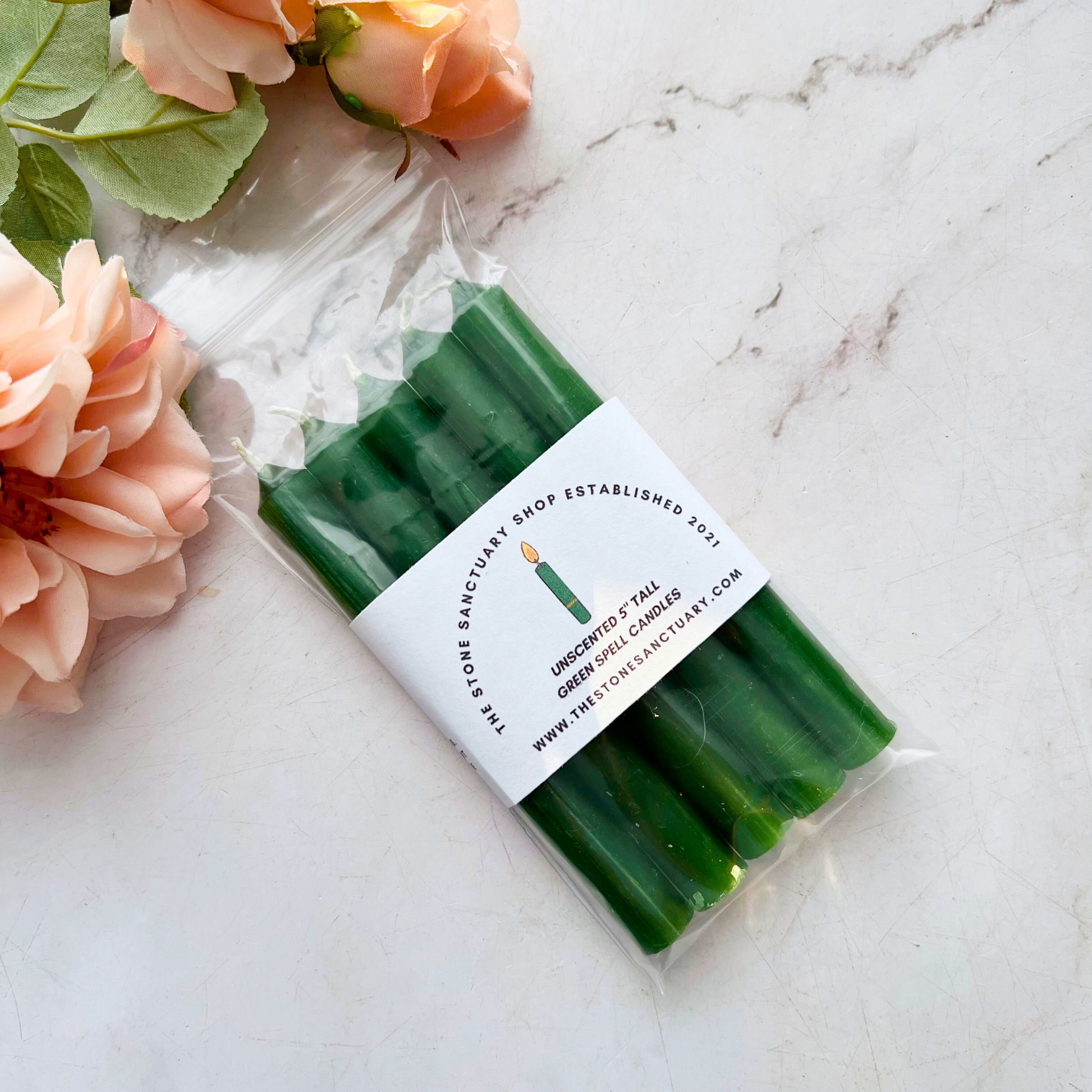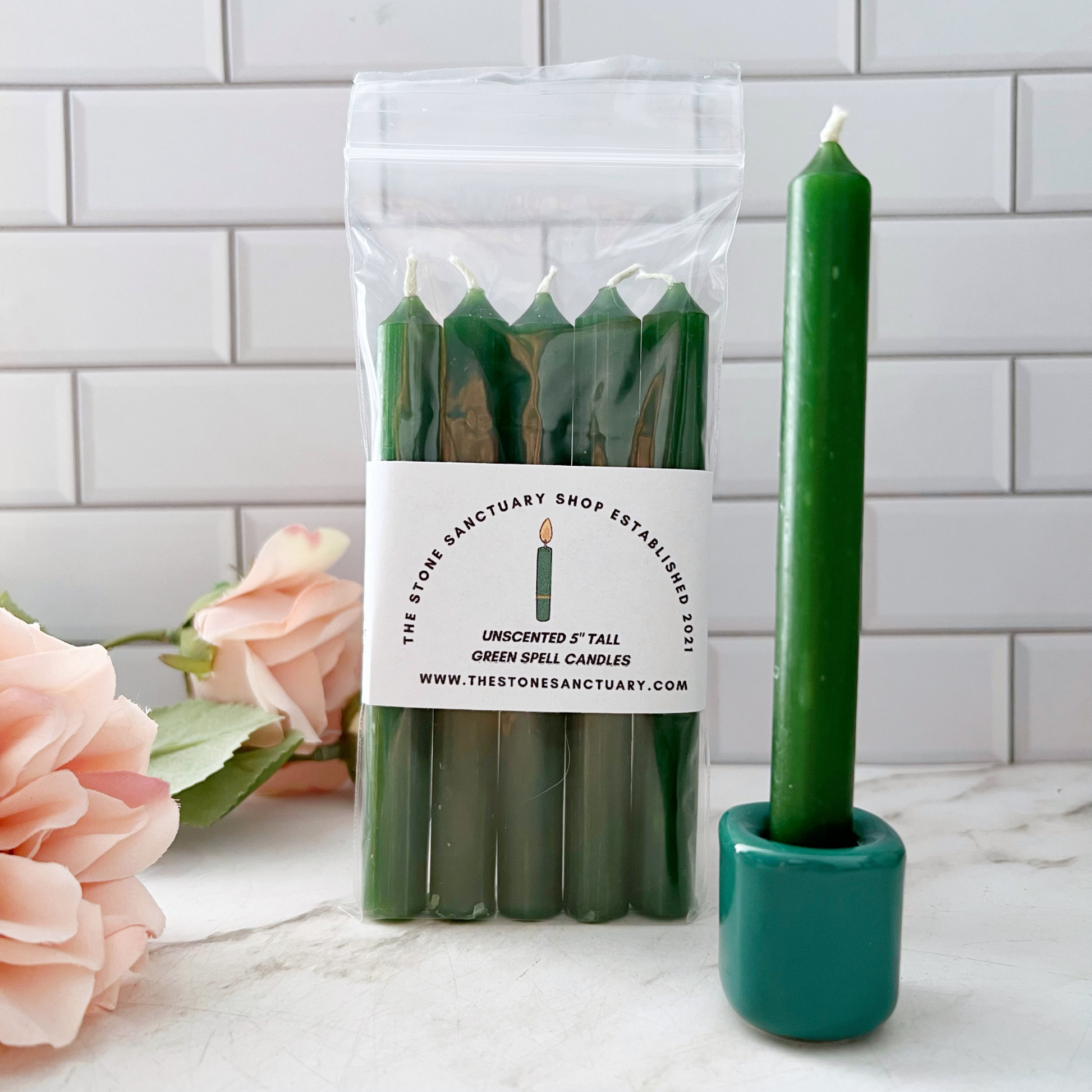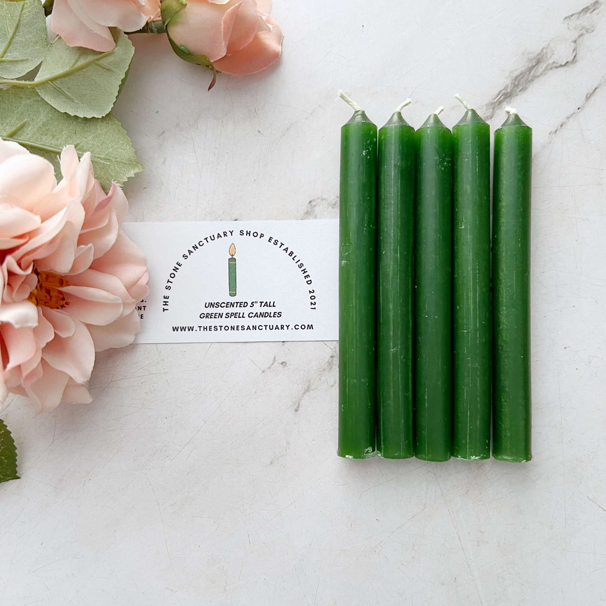5" inch Green Ritual Candles, also known as Chime Candles, are perfect for spellwork, meditation, altar offerings, rituals, and magic work. Select from the drop down menu the quanity you need.