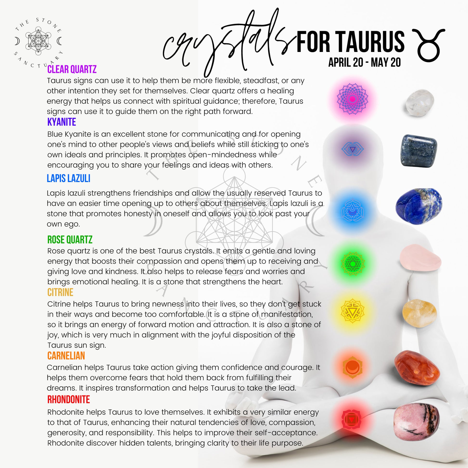 Our Crystals for Taurus set is custom curated with 7 Charka polished tumbled stones to work specifically with Taurus's unique energy and align their specific Chakra centers for their astrological sign.