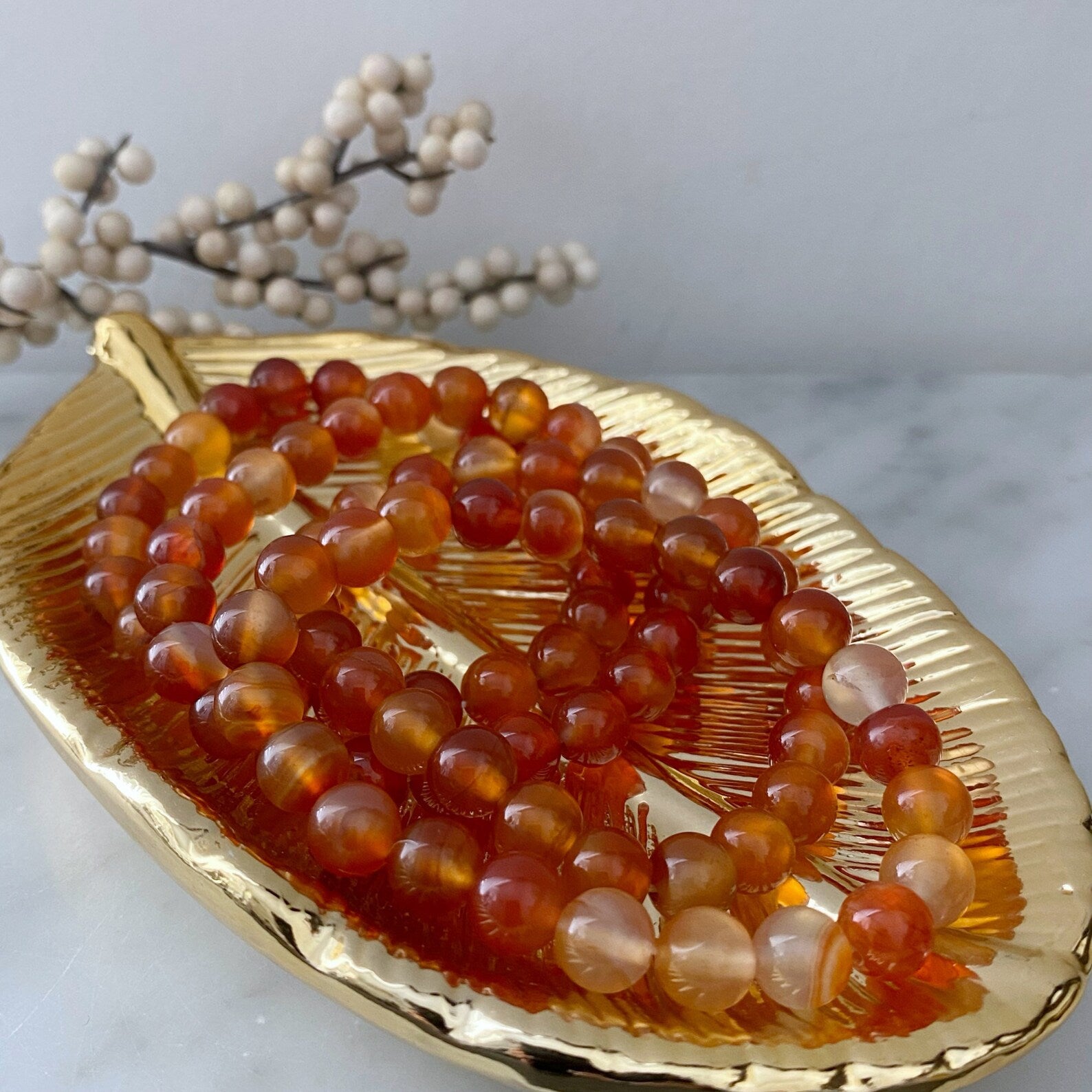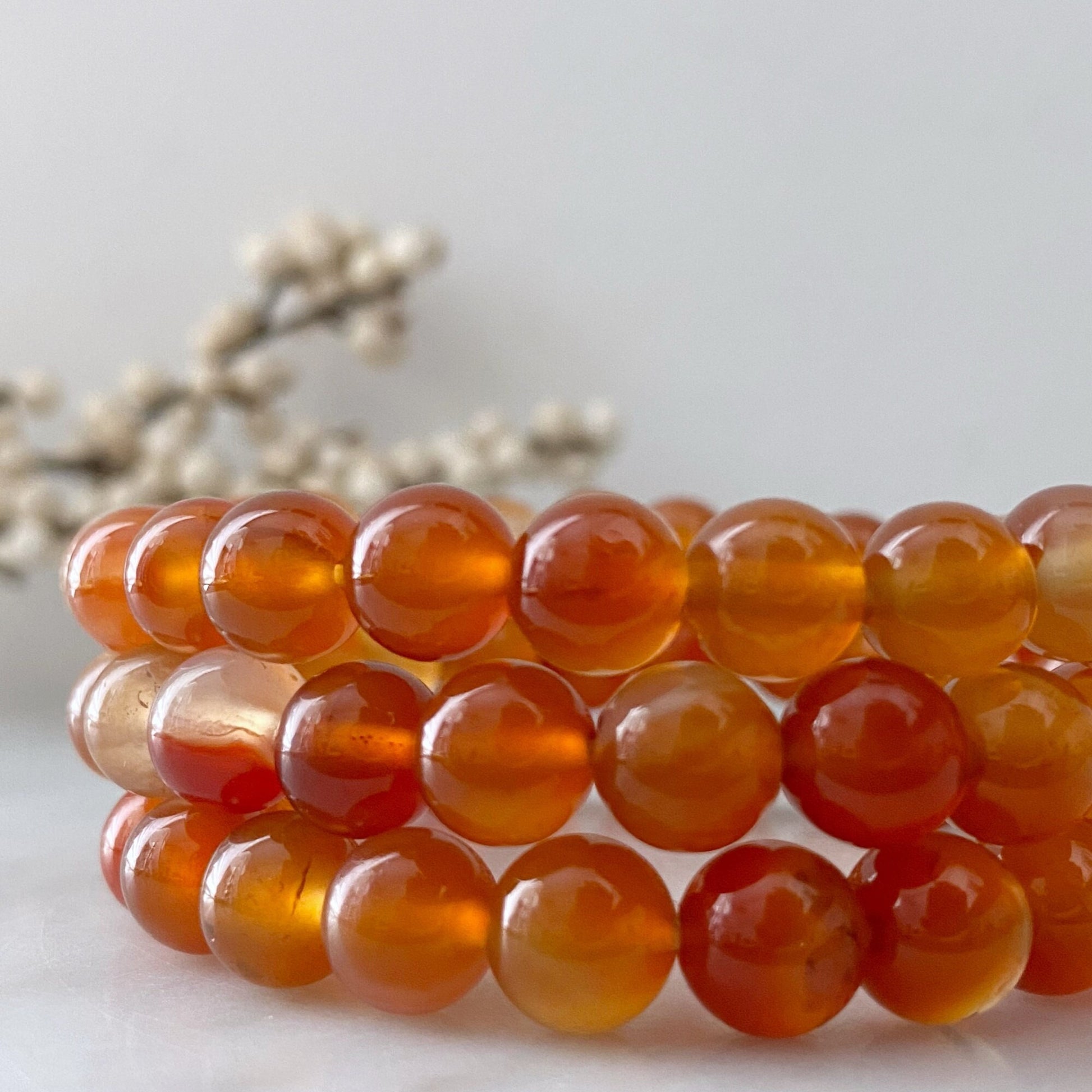 8mm Carnelian Agate Beaded Bracelet