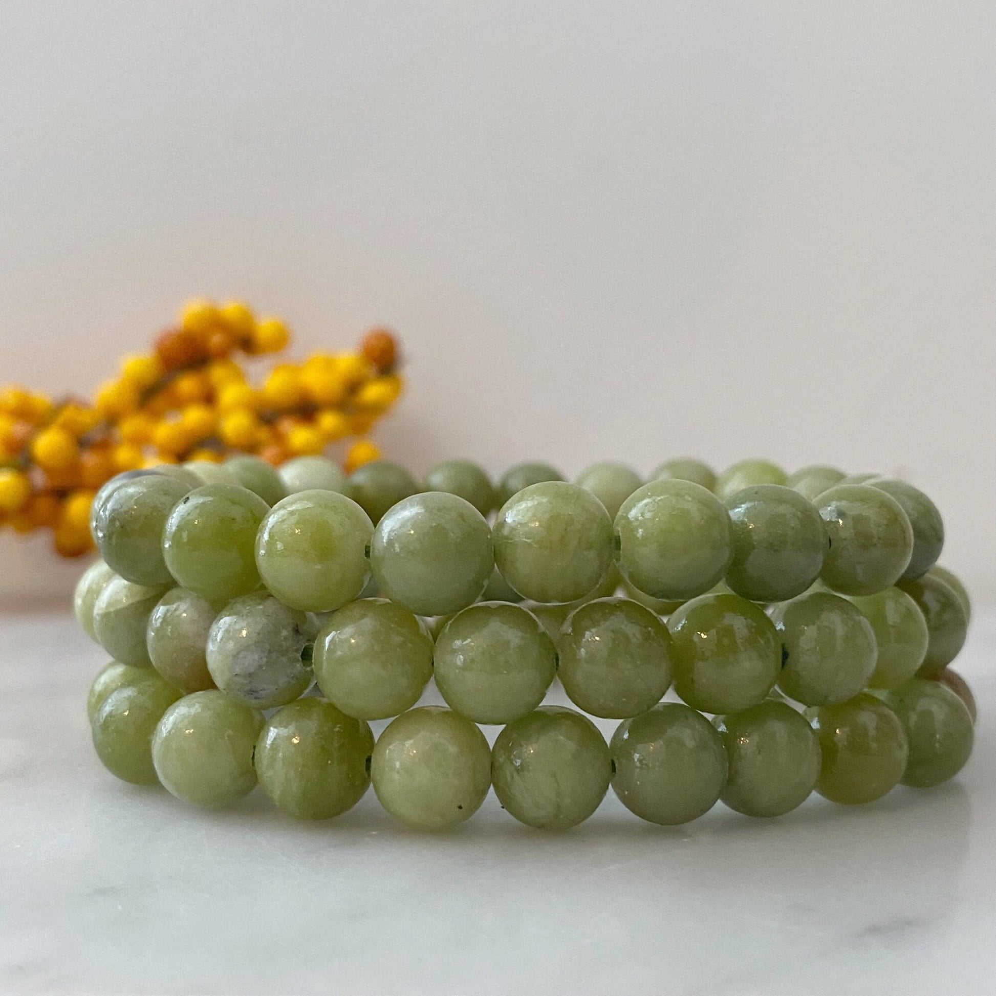 You will receive one (1) Chinese Green Jade beaded bracelet, made from 8mm Jade polished beads, are stretchable, and fit S/M wrists (fit up to 7-7.25" wrists comfortably.)