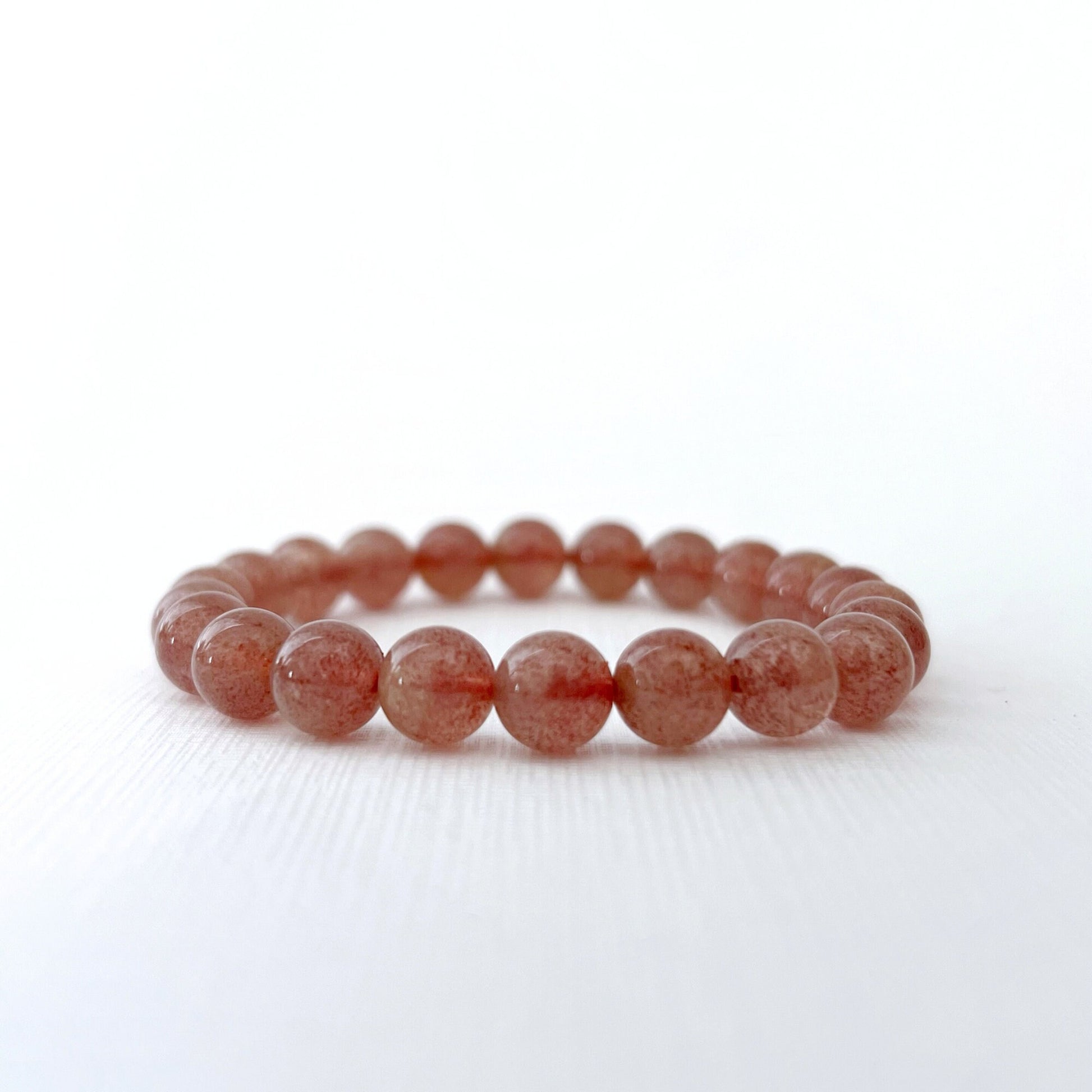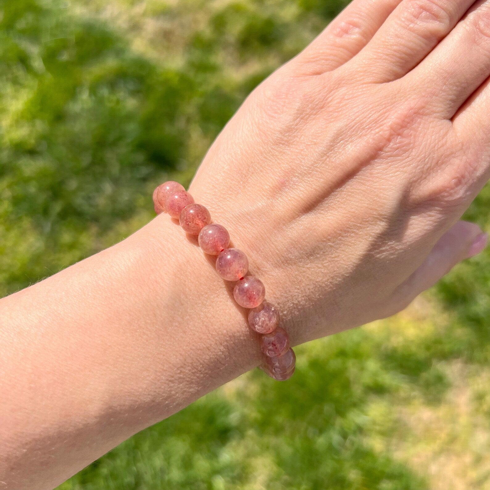 Designed for a comfortable fit on wrists measuring 7-7.25 inches, our Strawberry Quartz gemstone bracelet is crafted with a durable red stretch cord, ensuring secure and relaxed wear throughout the day. Each bead has been selected for its color and quality, ensuring that your bracelet is as beautiful as it is meaningful.
