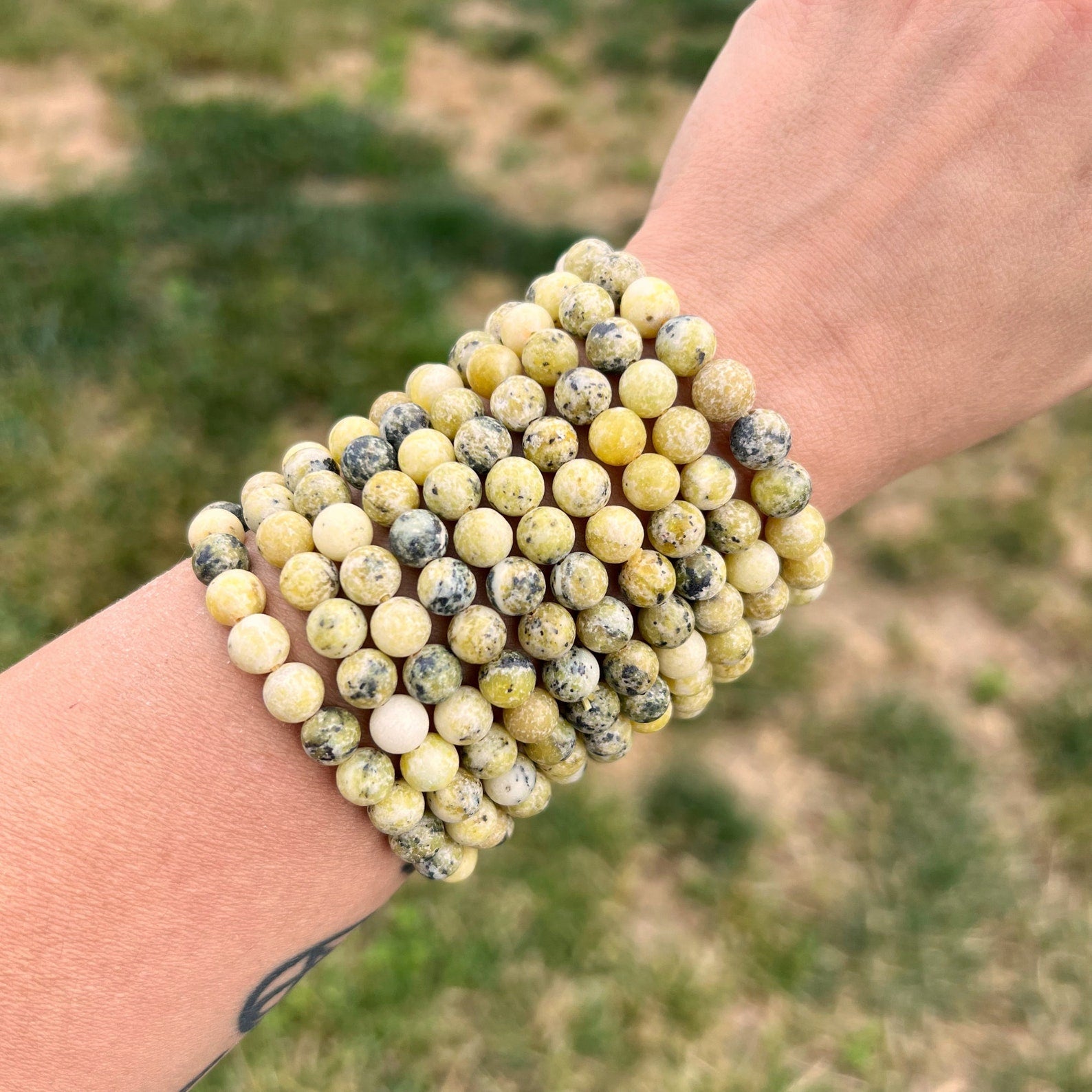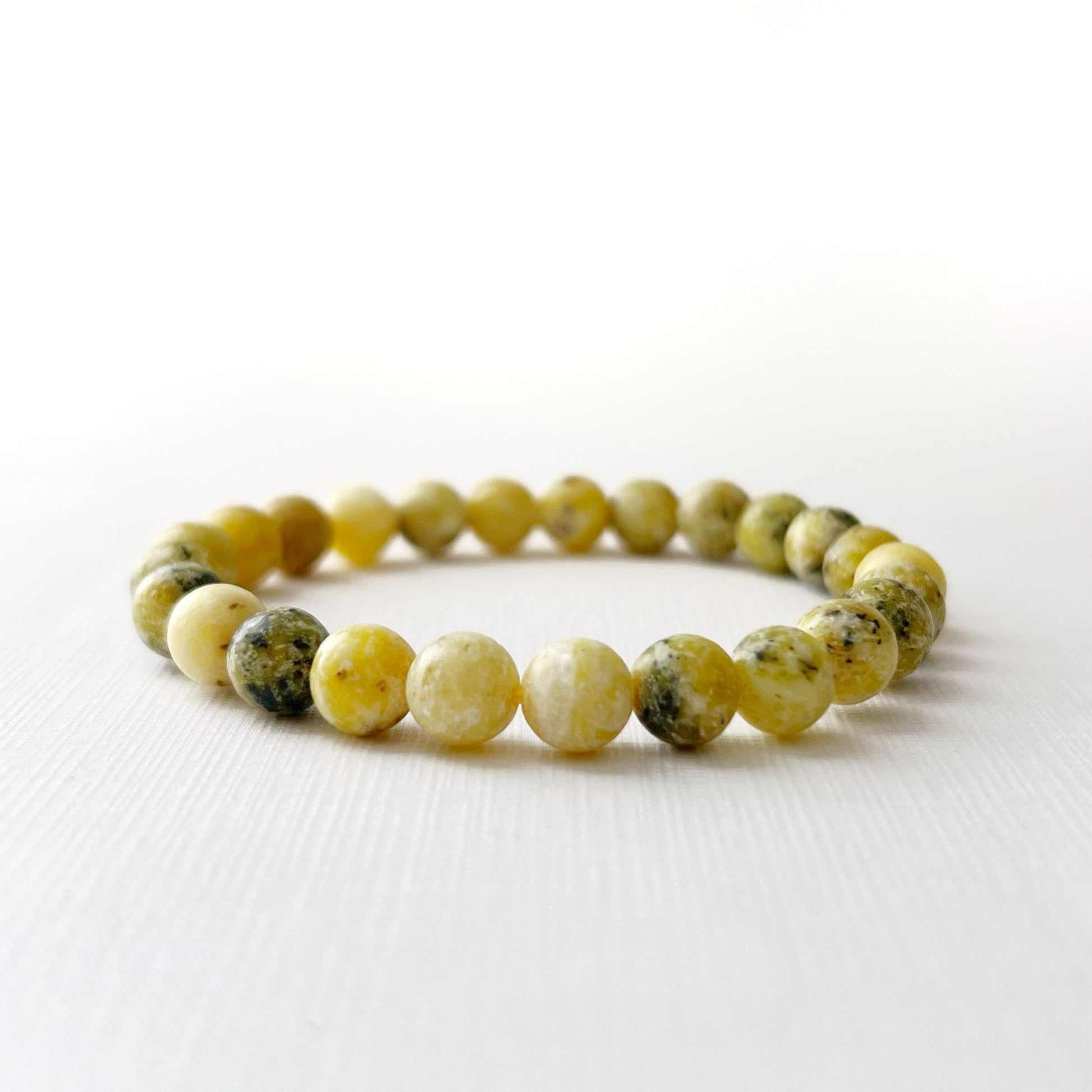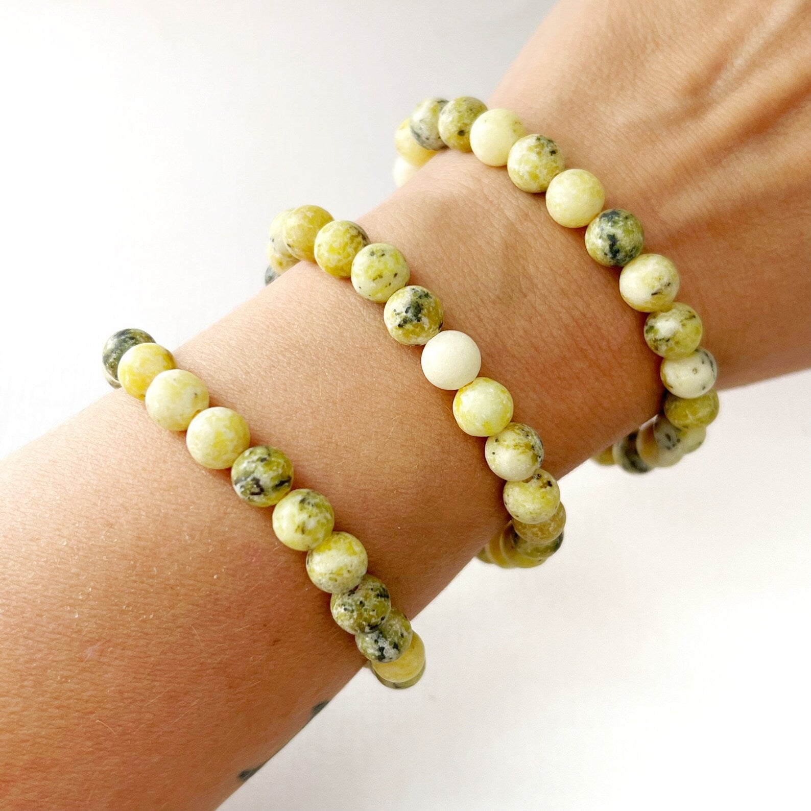 You will receive one (1) Yellow Turquoise beaded bracelet, made from 8mm Yellow Turquoise polished beads, are stretchable, and fit averaged sized S/M wrists (fit up to 7-7.15" wrists comfortably.)