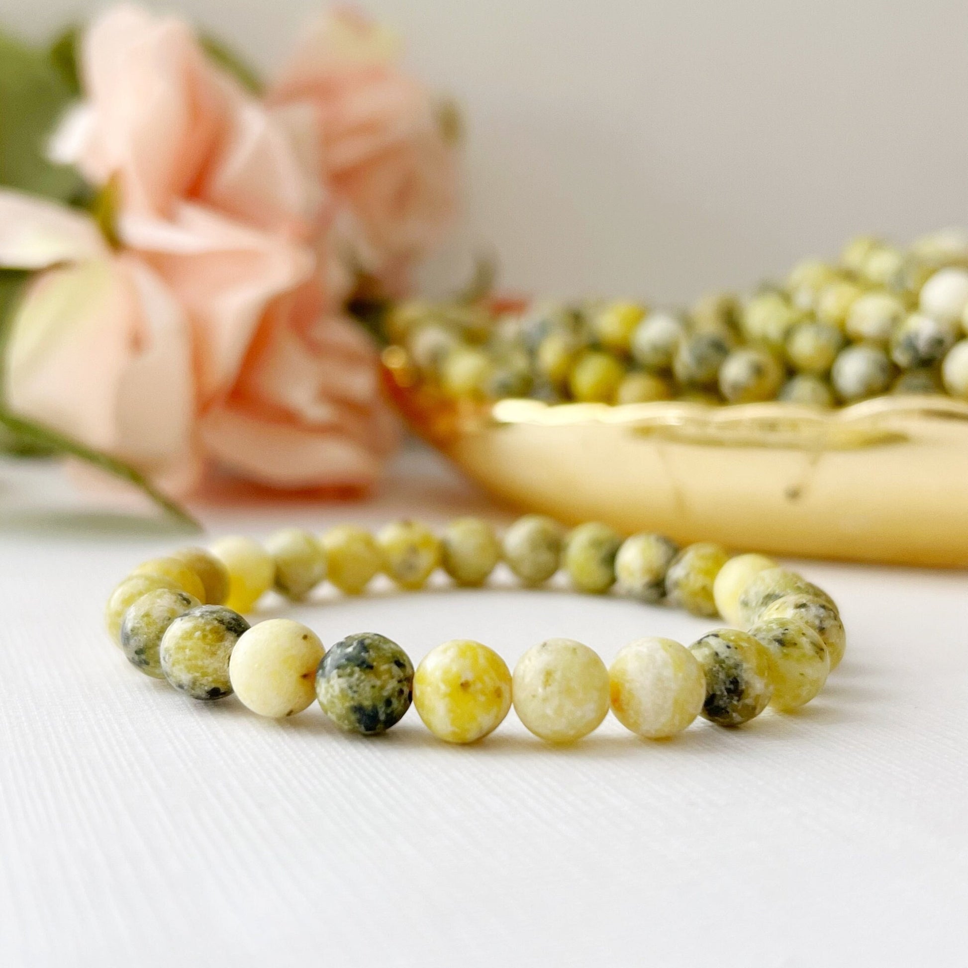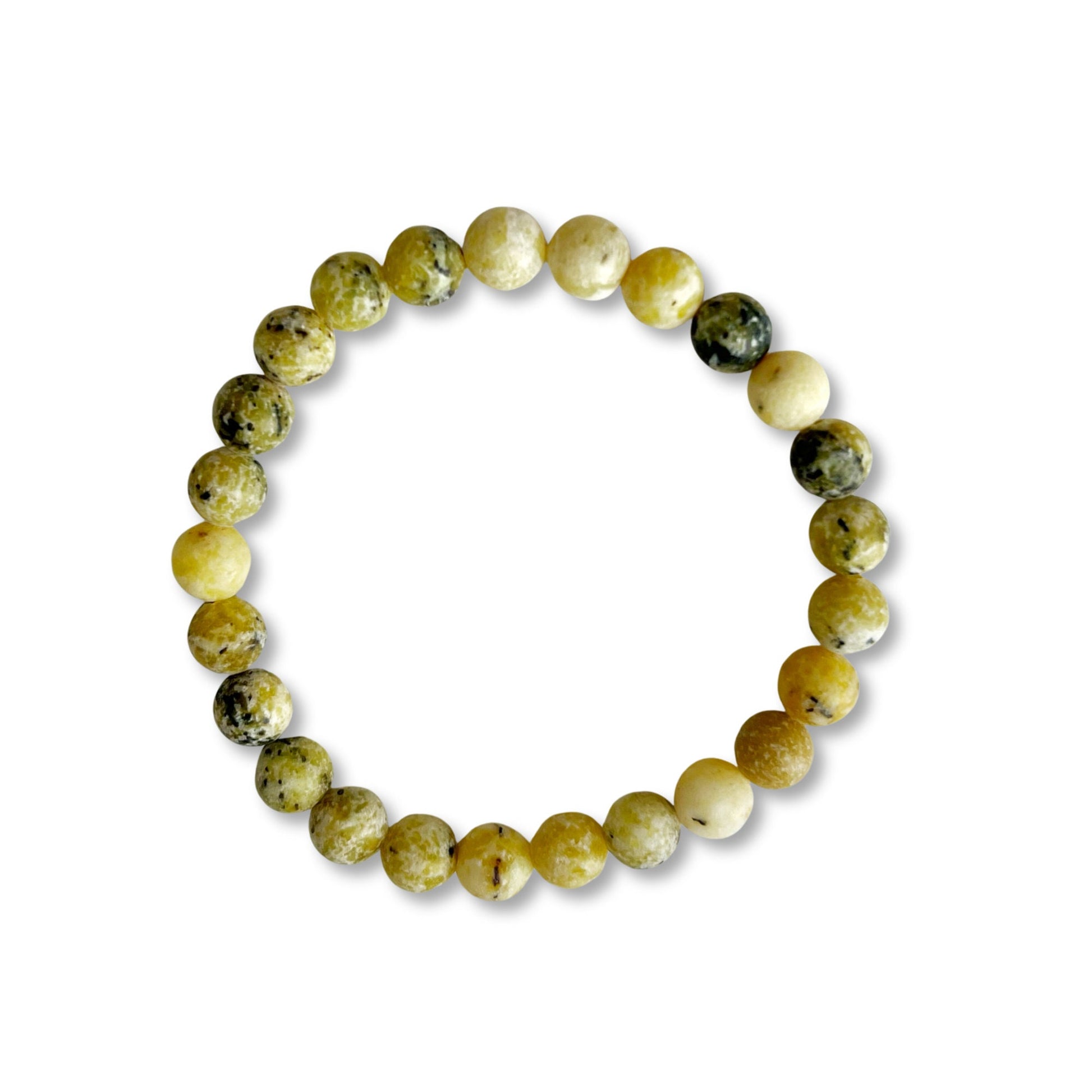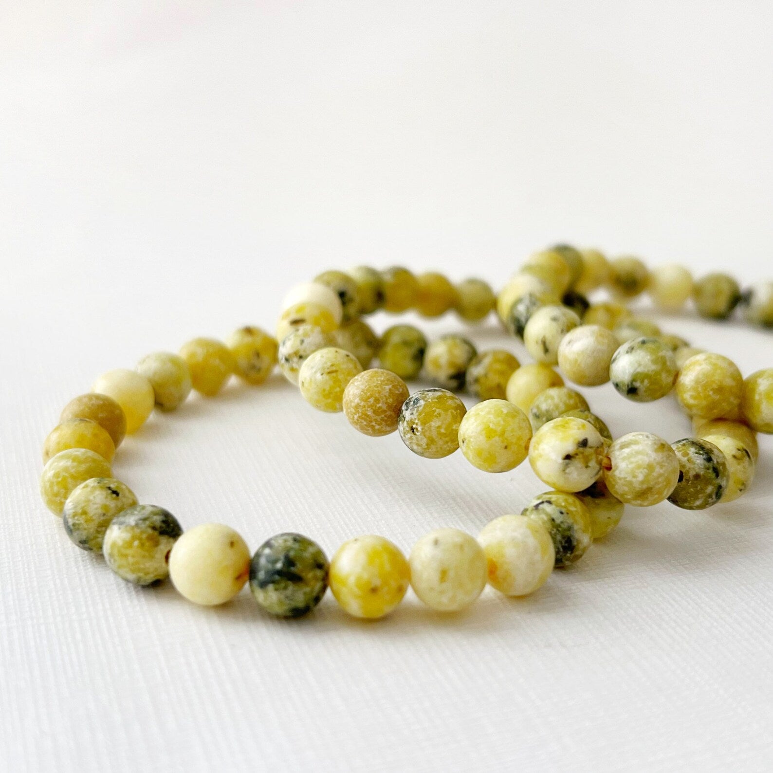 You will receive one (1) Yellow Turquoise beaded bracelet, made from 8mm Yellow Turquoise polished beads, are stretchable, and fit averaged sized S/M wrists (fit up to 7-7.15" wrists comfortably.)