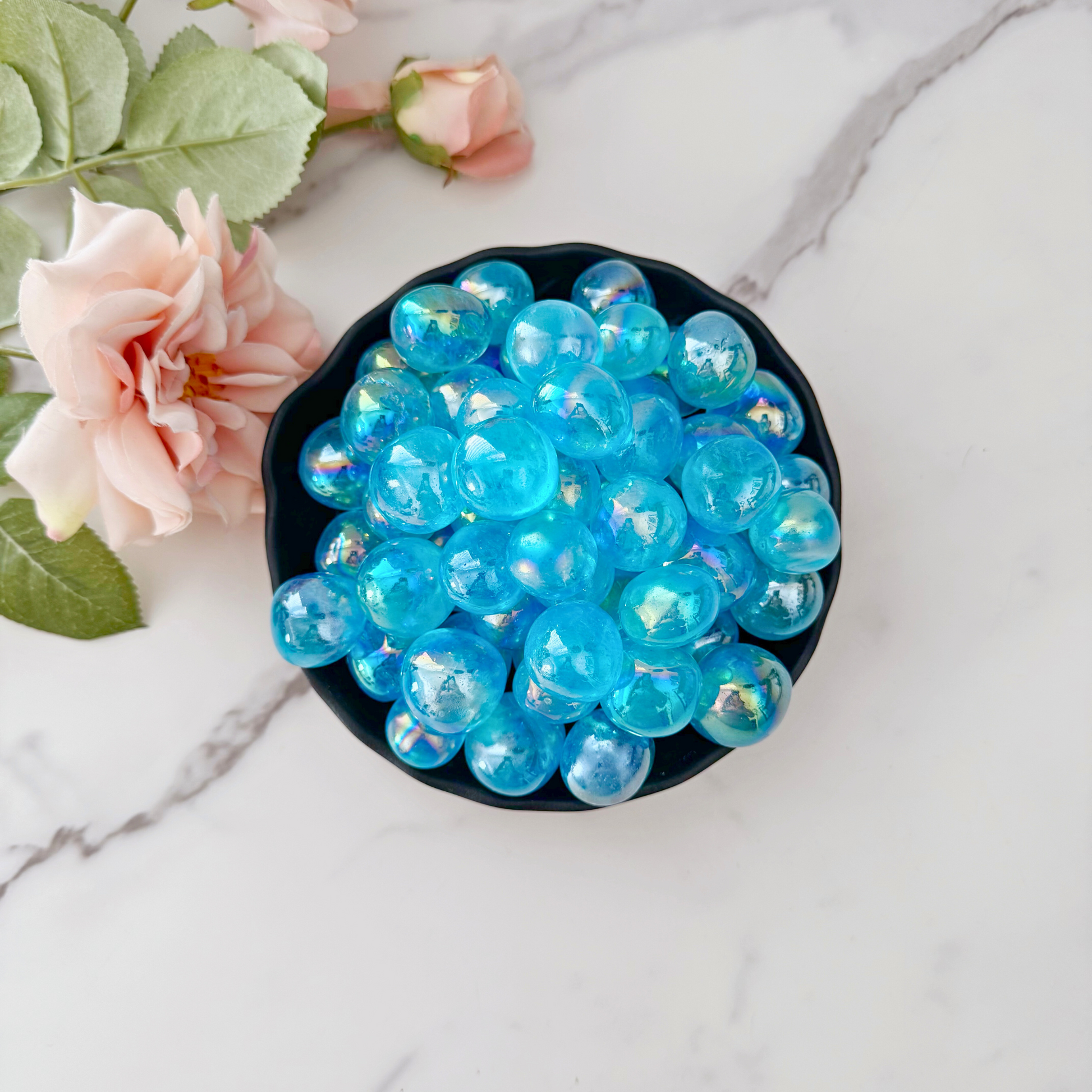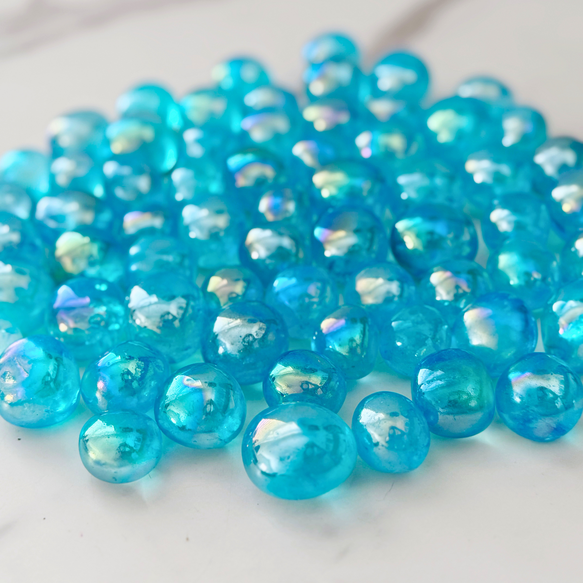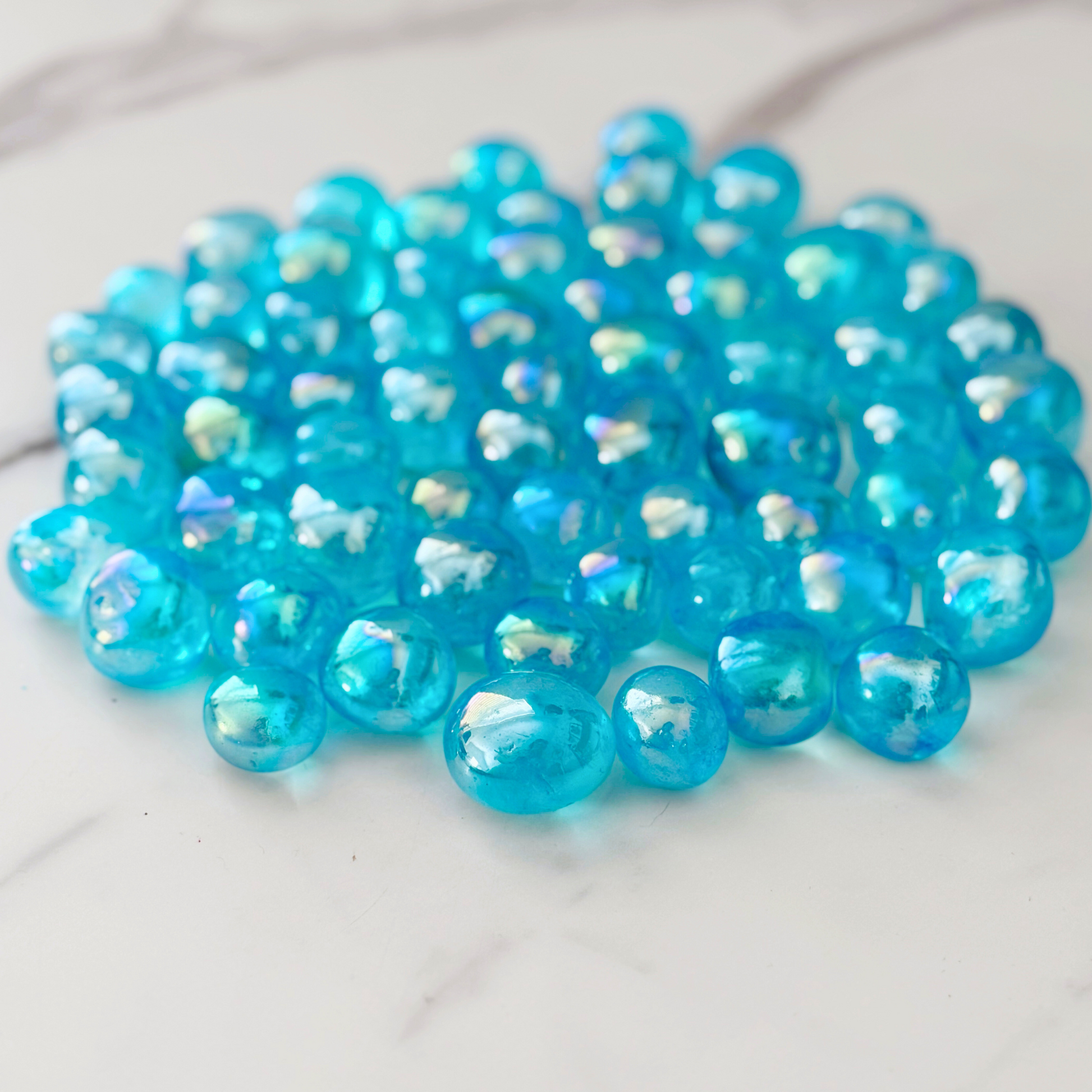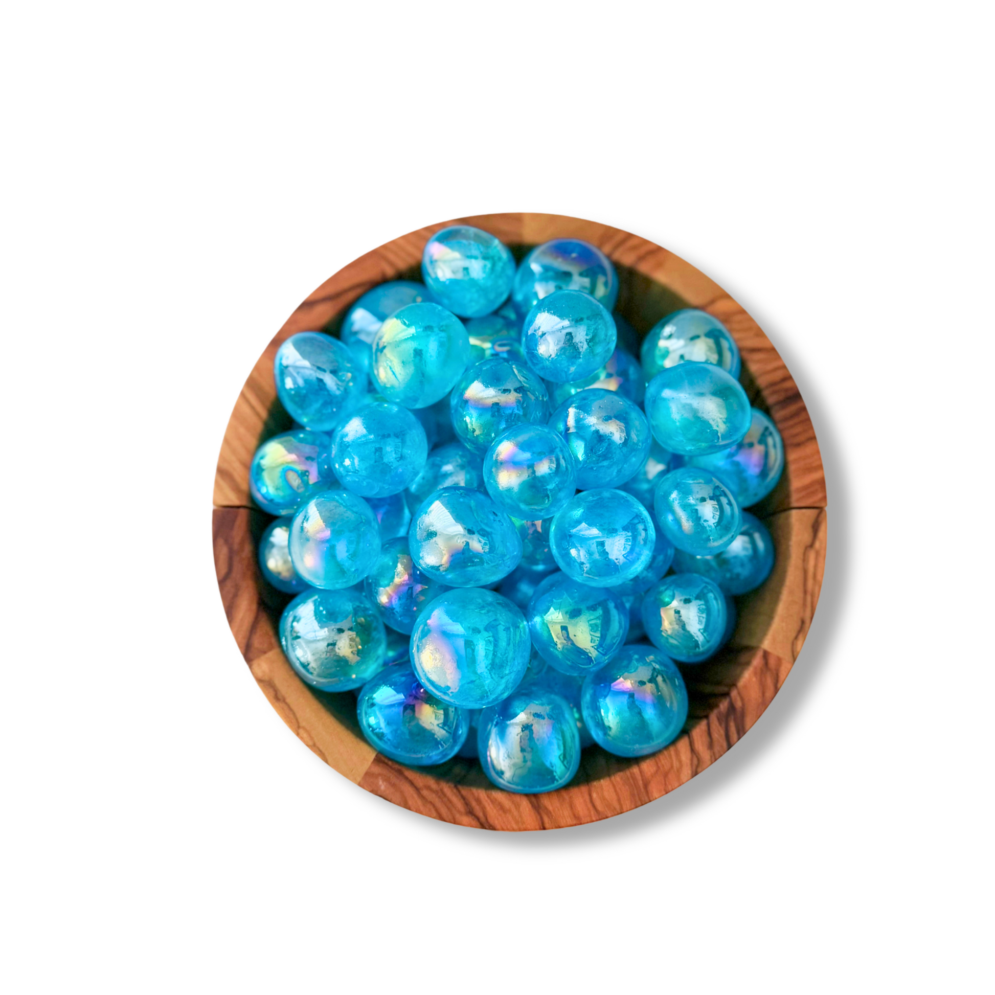 Aqua Aura Quartz is Clear Quartz that is bonded with Gold. Through this alchemical process of plating it produces an electric or sky blue crystal with subtle flashes of rainbow iridescence; named for its rich beautiful color.