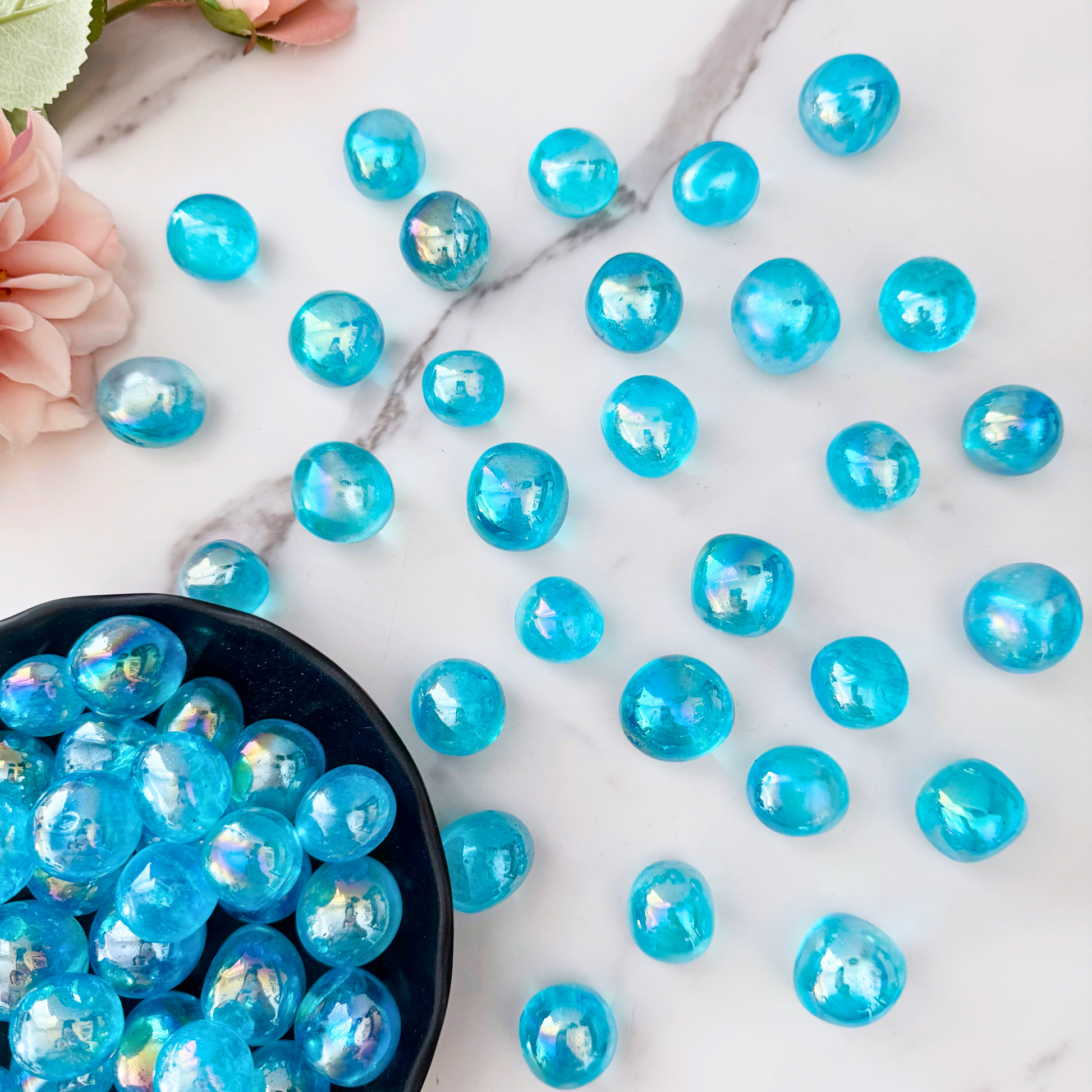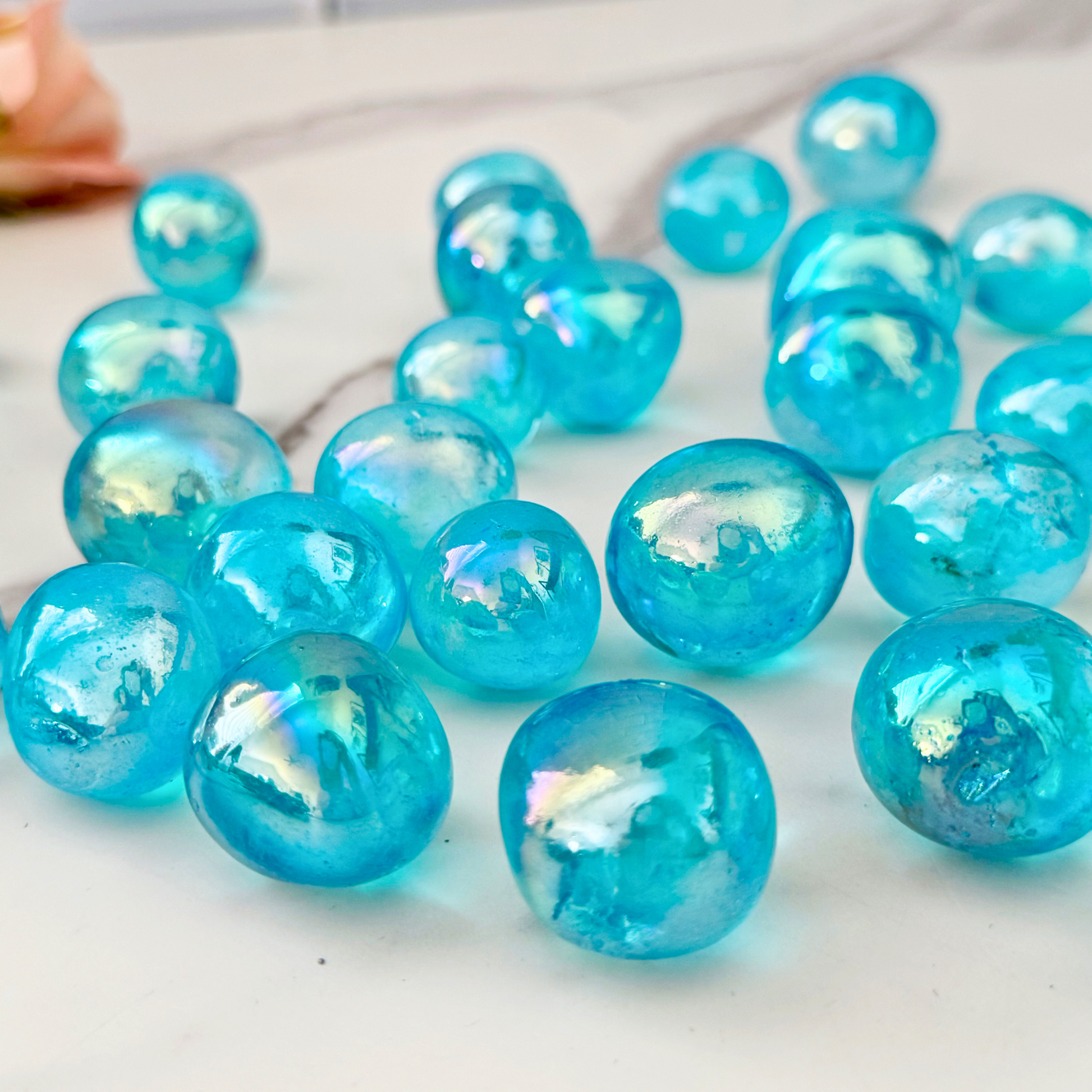 You will receive 1 polished, tumbled Aqua Aura Quartz stone intuitively chosen.
