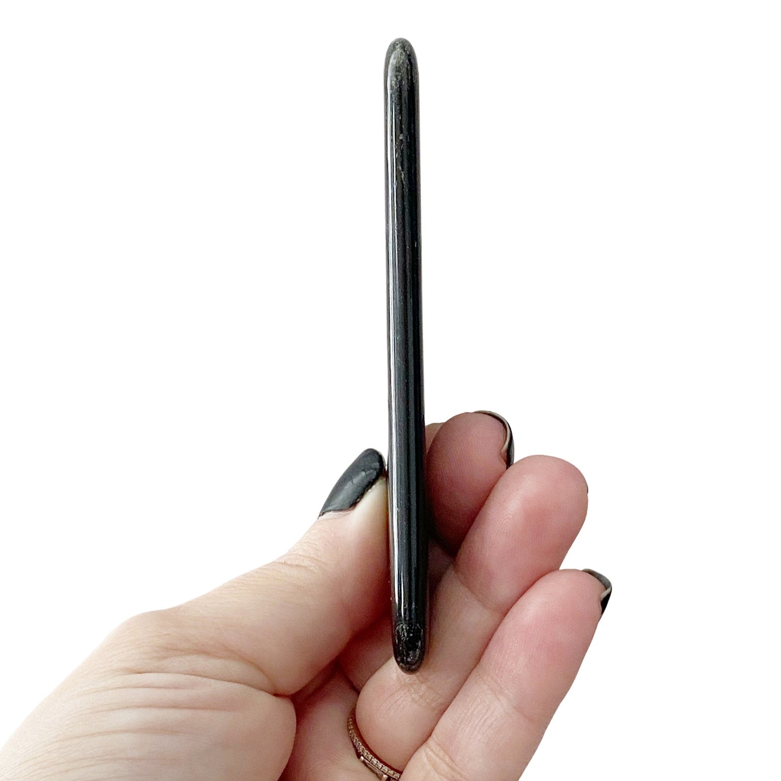 Introducing the 3.75-inch Black Obsidian Gua Sha Massager, a beautifully crafted tool designed for deep, soothing massages and promoting overall wellness. This elegant massager is carved from pure Black Obsidian, a naturally occurring volcanic glass known for its healing properties and protective energy. At approximately 3.75 inches, it's the perfect size to fit comfortably in your hand, allowing for easy manipulation and control during your skincare routine or massage session.