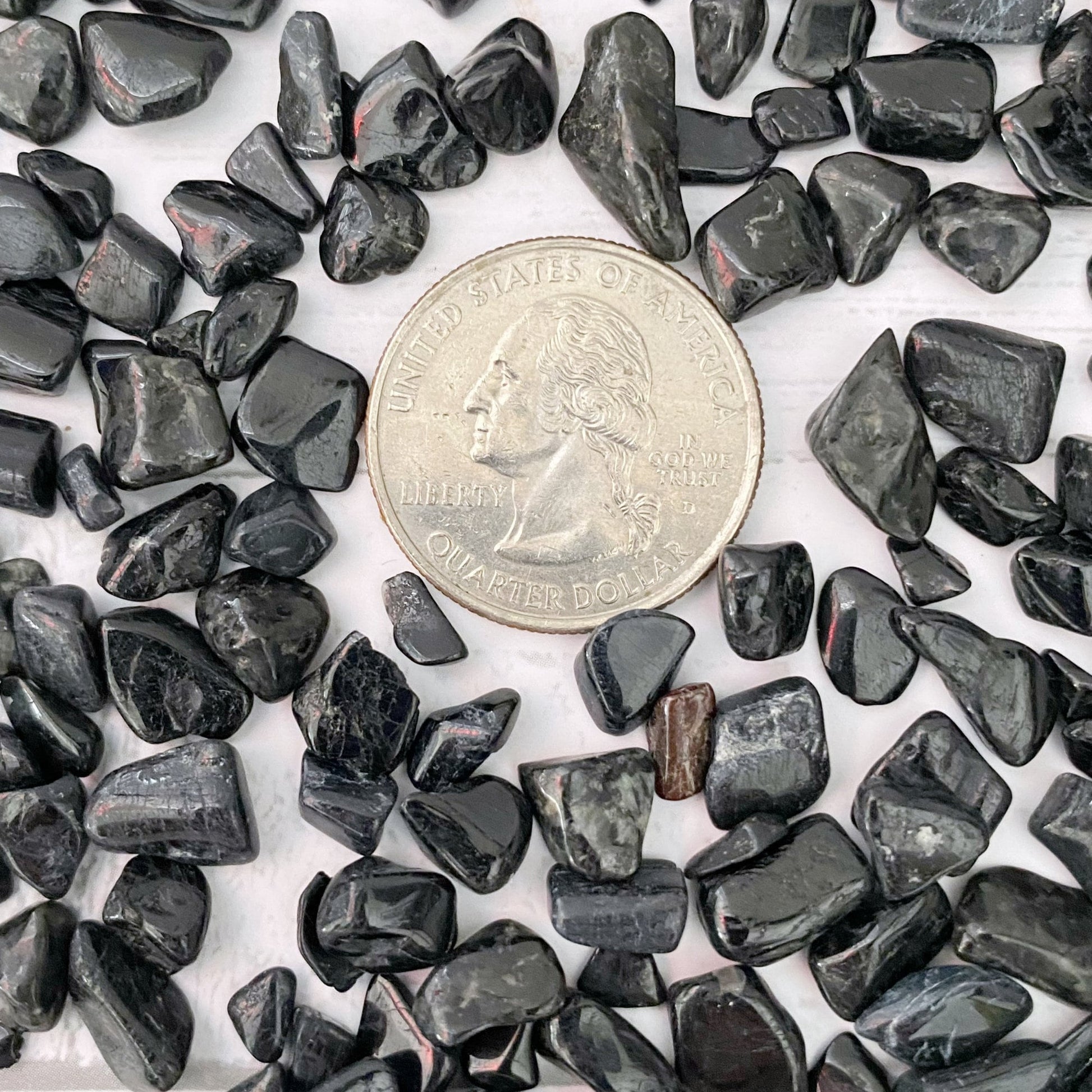 Black Tourmaline, a revered member of the Tourmaline family, is celebrated for its profound protective qualities. It's believed to repel and block negative energies and psychic attacks, acting as a shield for your aura. Whether you're crafting a piece of jewelry to wear daily or adding these chips to a sacred space, they serve as guardians against negativity, ensuring that you and your surroundings are bathed in clean, positive energy. Additionally, Black Tourmaline is said to aid in the removal of negative energies within a person or a space, promoting an environment of peace and safety.