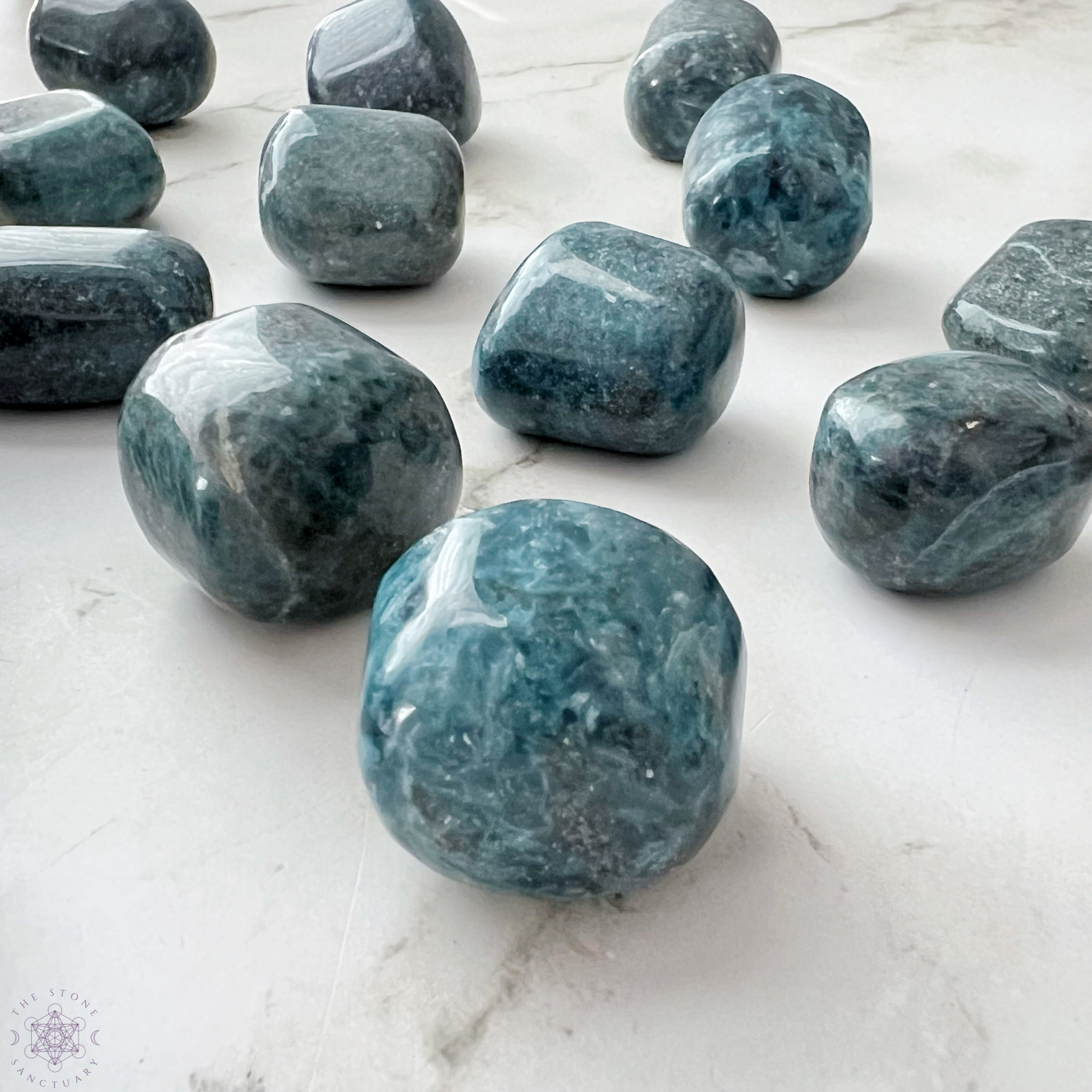You will receive 1 hand-polished Blue-Green Kyanite tumble Stone intuitively chosen which ranges in size from 20-30mm (.75-1.2" inches)