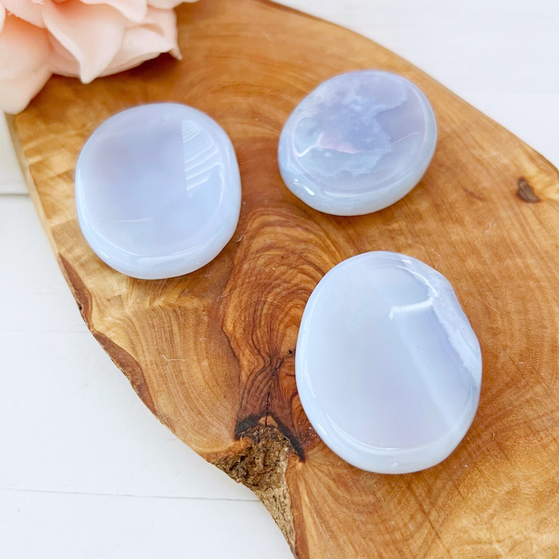 Order your worry stone today and carry the serenity of Blue Lace Agate wherever you go, immersing yourself in its soothing energy and finding solace in moments of stress.
