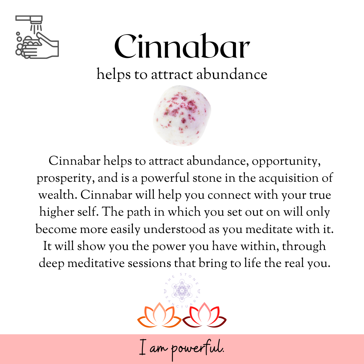⚠️WARNING: While tumbled cinnabrite is generally safe to handle, we recommend to wash hands thoroughly after use. Do not use in elixirs or water infusions as it can be toxic if ingested.