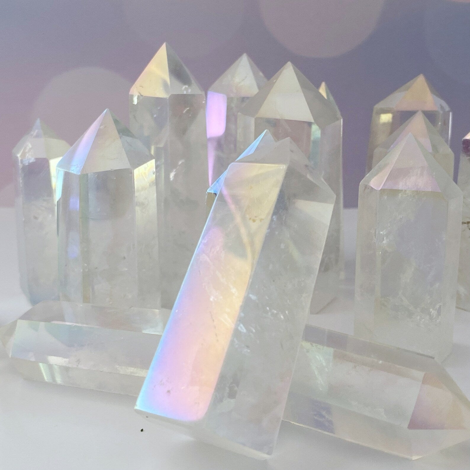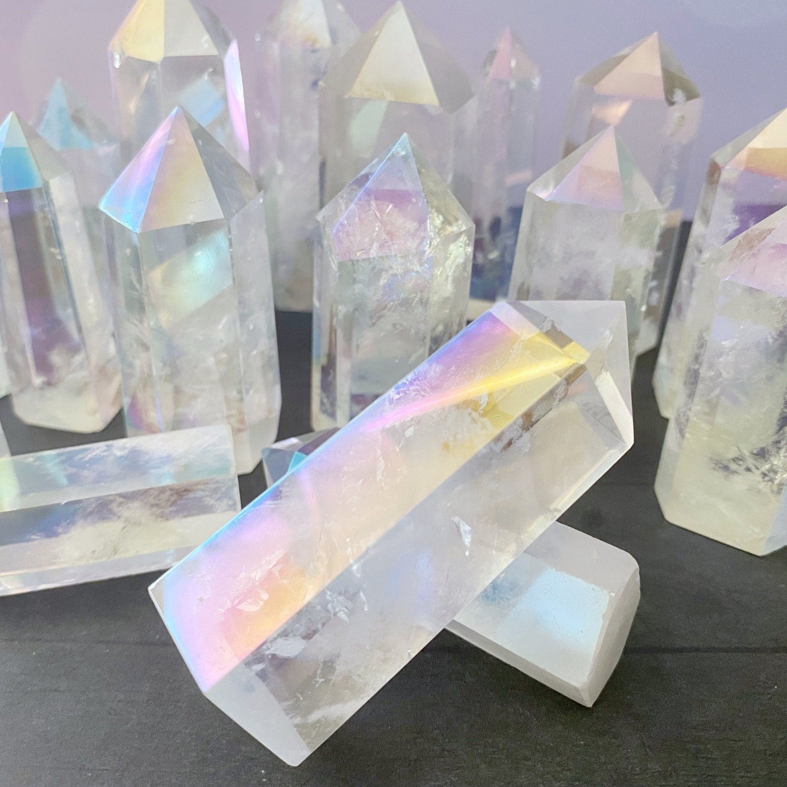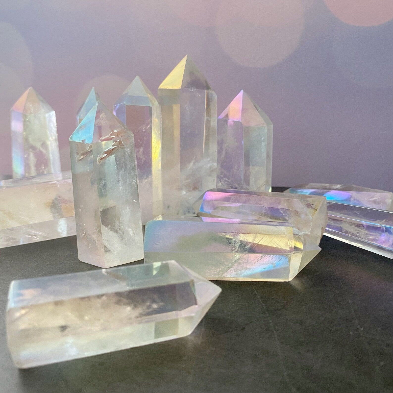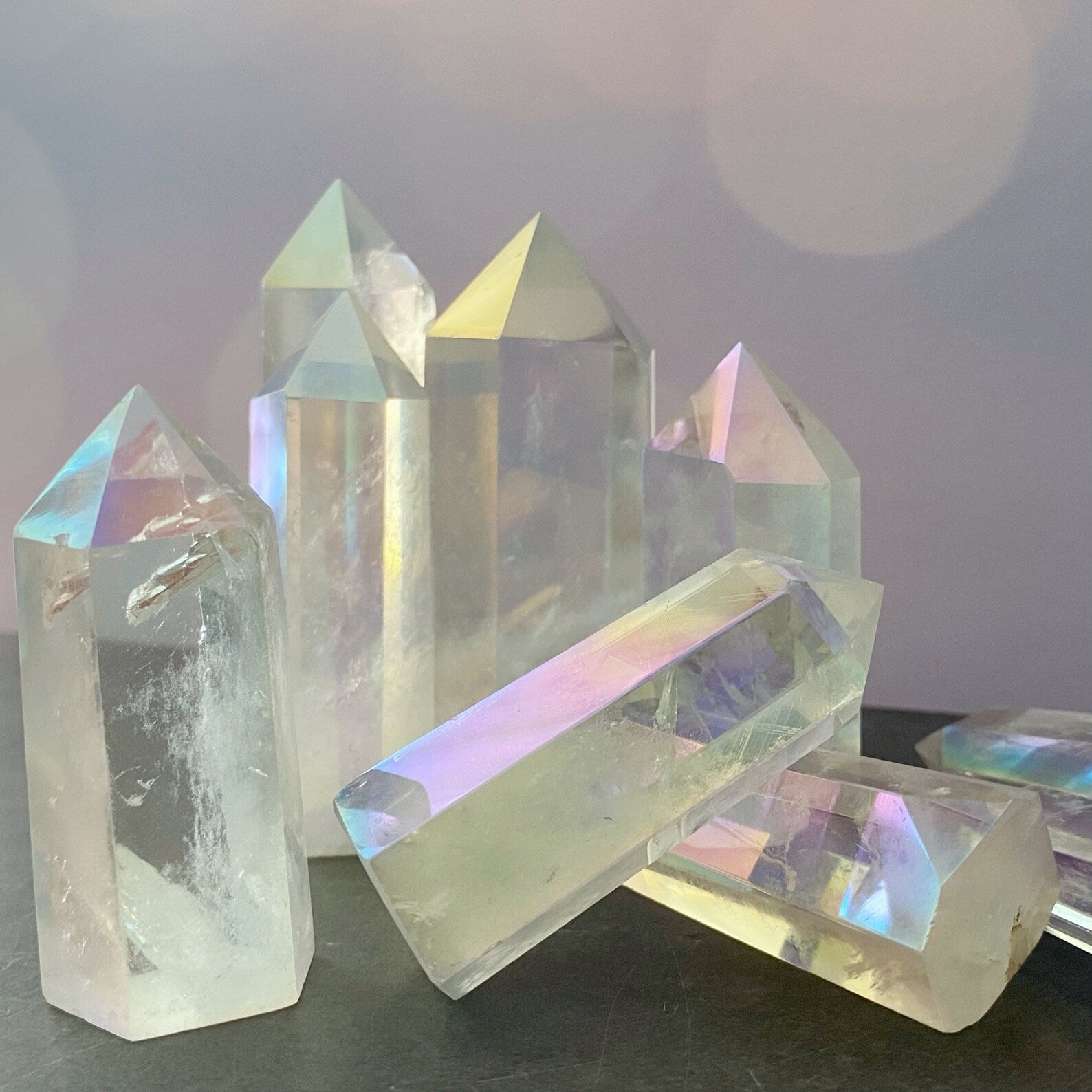 Angel Aura Quartz, also known as Aura Lite, undergoes a transformative process involving extreme heat and a special blend of metals like Platinum, Gold, and Silver. This alchemical fusion creates the mesmerizing iridescence that sets Angel Aura Quartz apart. These precious metals bond permanently with the quartz lattice, resulting in a unique and harmonious blend of vibrations.