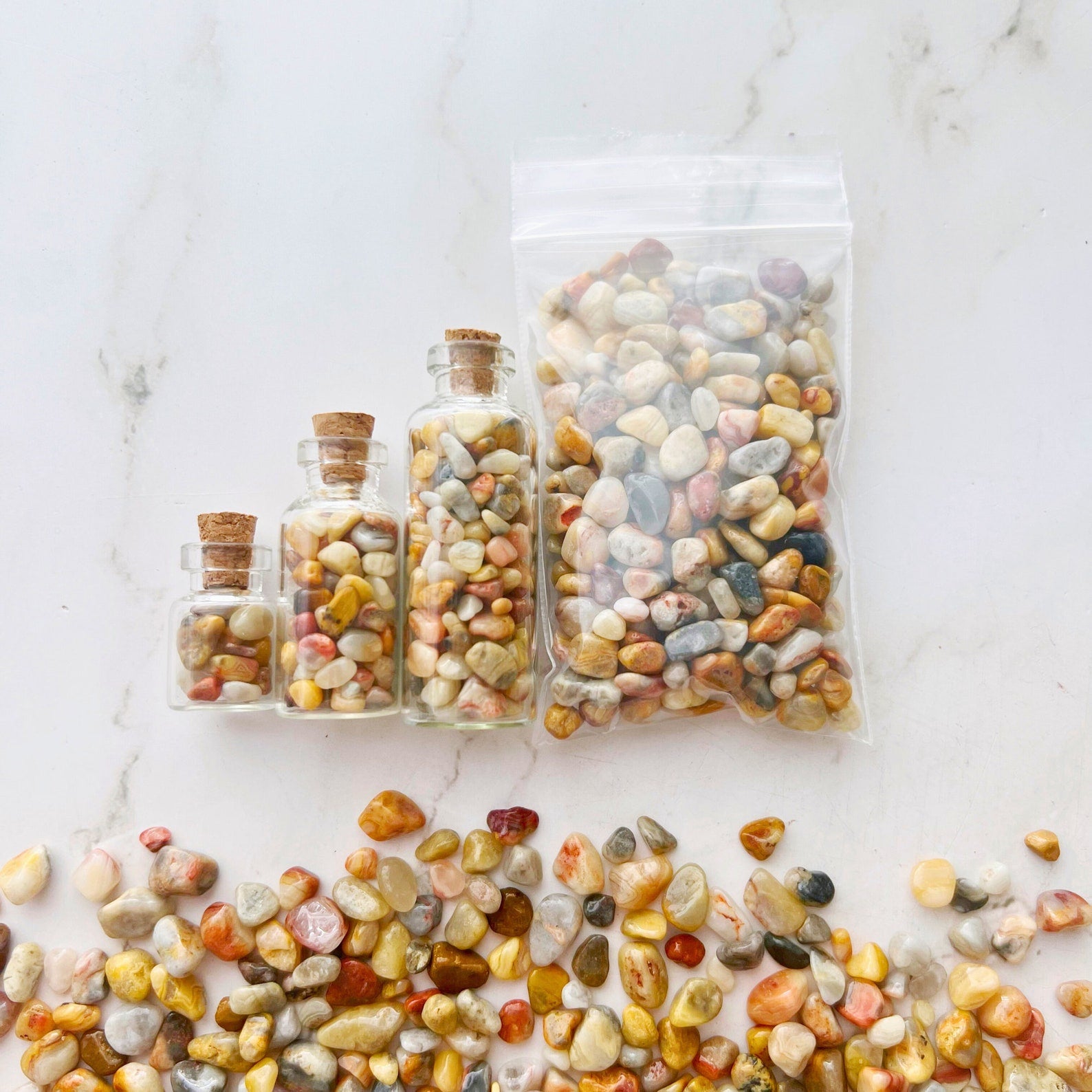 Crazy Lace Agate Crystal Chips are perfect for various creative and mystical endeavors. Whether you're into candle making, adding to your roller ball oils, crafting, or creating resin jewelry, these chips add a touch of natural energy to your projects. They're also ideal for spell jars, mojo bags, witch balls, orgone devices, and as sacred additions to your altar jars.