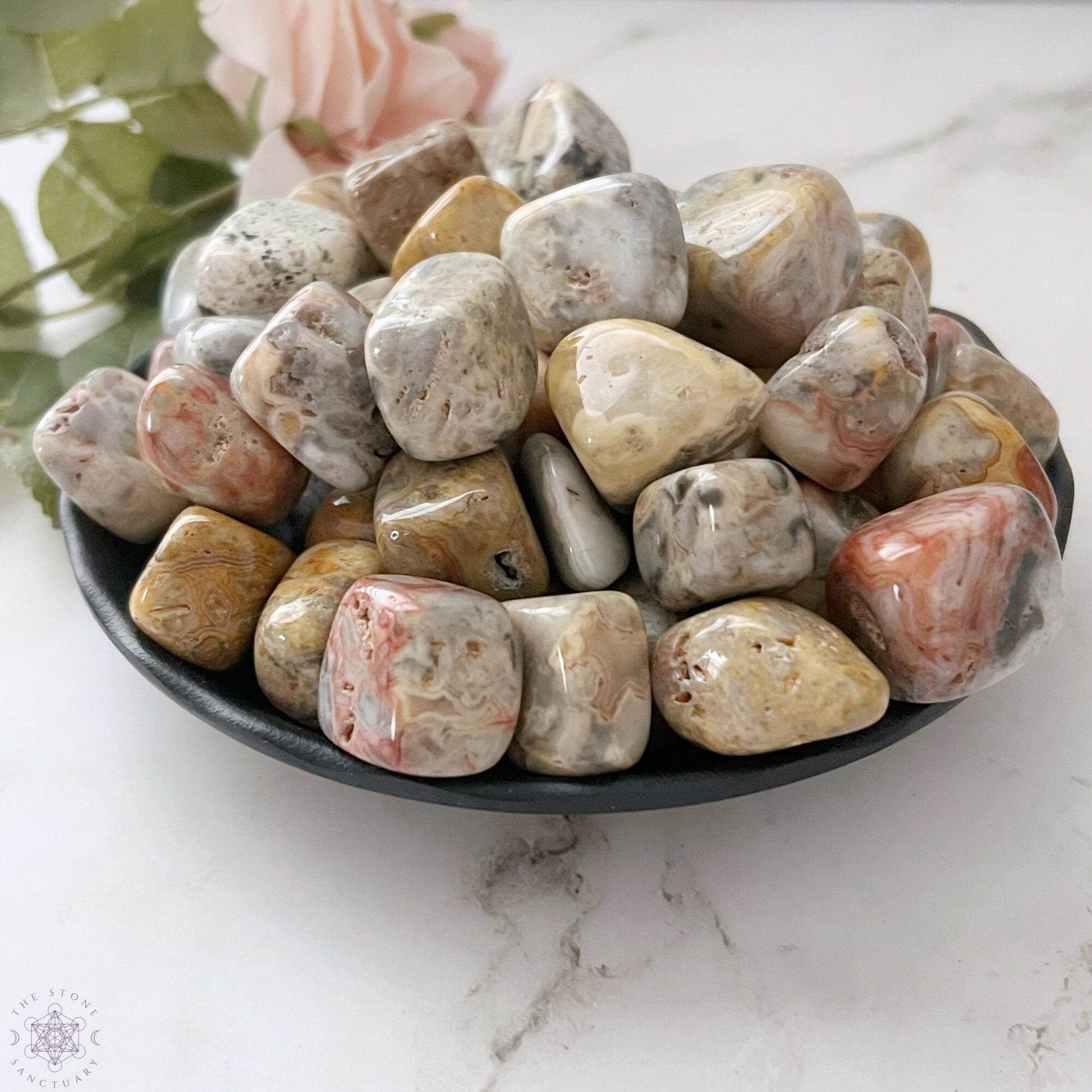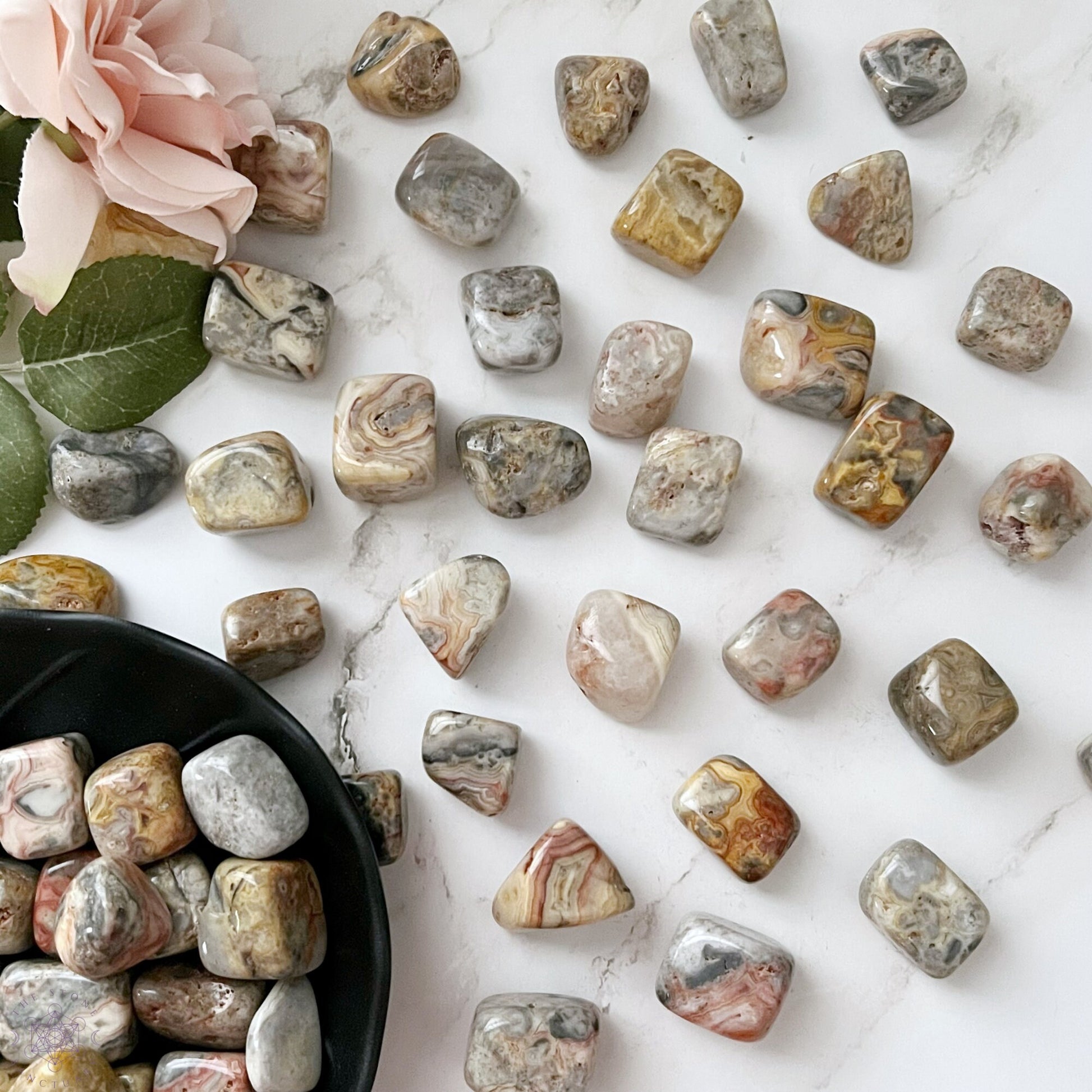 You will receive 1 Crazy Lace Agate tumbled stone, also known as Mexican Lace Agate, measuring .5-1" in size (medium tumble).