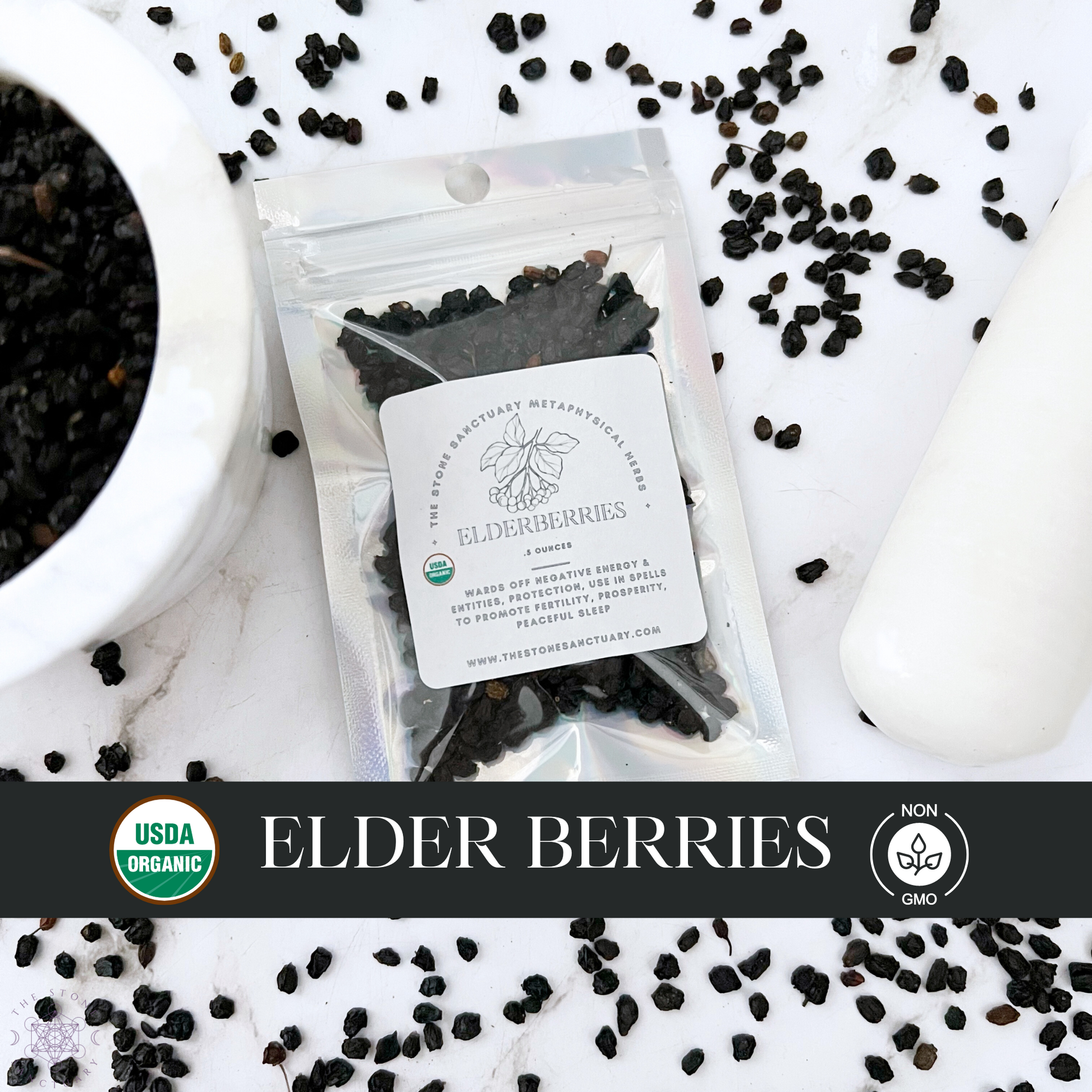 Our Elderberries, Whole (Sambucus nigra) - the perfect ingredient for your magical rituals, spell casting, or recipes. From crafting candles, resin crafts, incense, and enchantment jars to creating ritual baths, mojo or charm bags, simmer pots, sachets, poppets, potions, oils, teas, or tinctures.