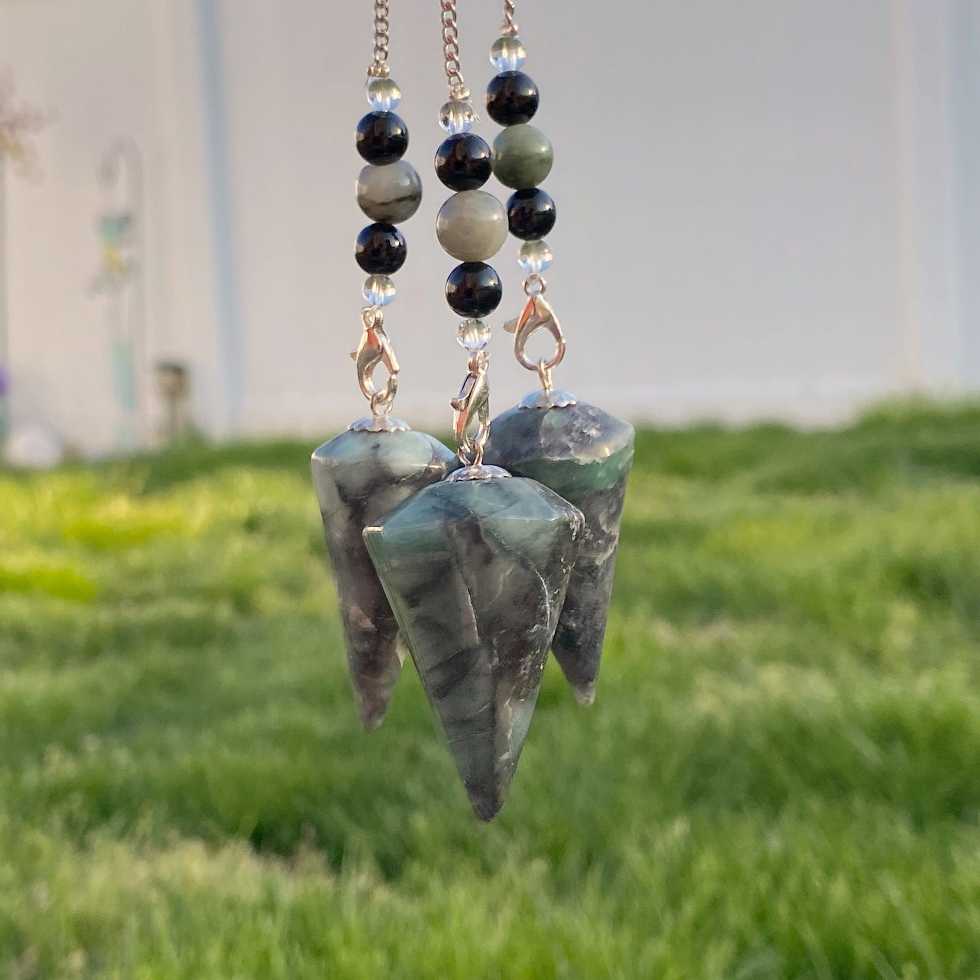 Emerald Hexagonal Pendulum with Dragonfly Charm