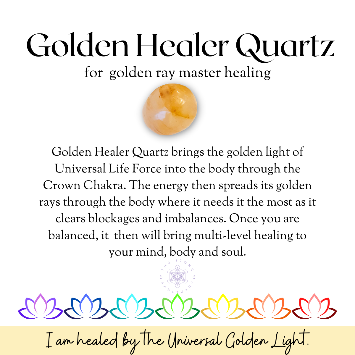 Golden Healer Quartz brings the golden light of Universal Life Force into the body through the Crown Chakra. The energy then spreads its golden rays through the body where it needs it the most as it clears blockages and imbalances. Once you are balanced, it then will bring multi-level healing to your mind, body and soul.
