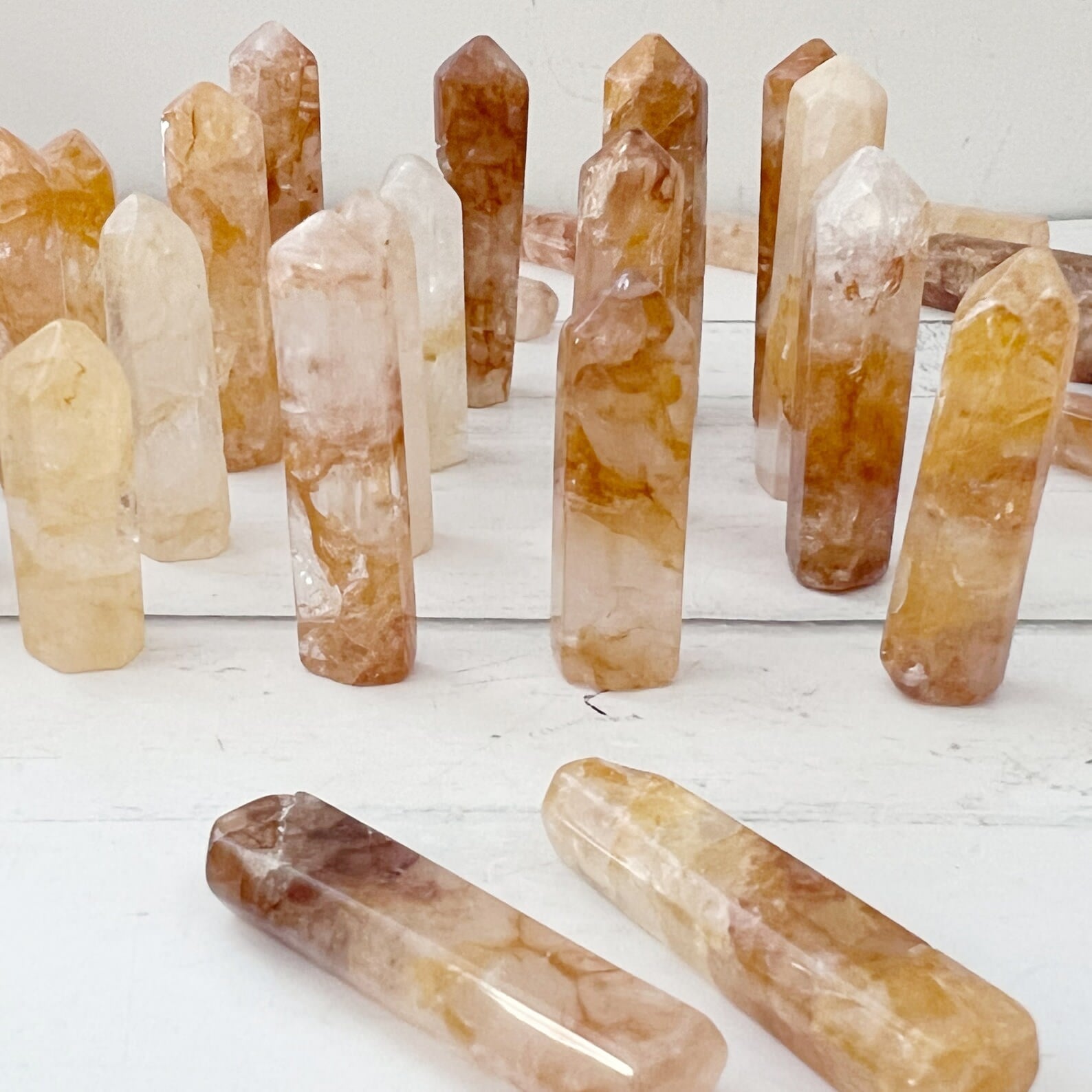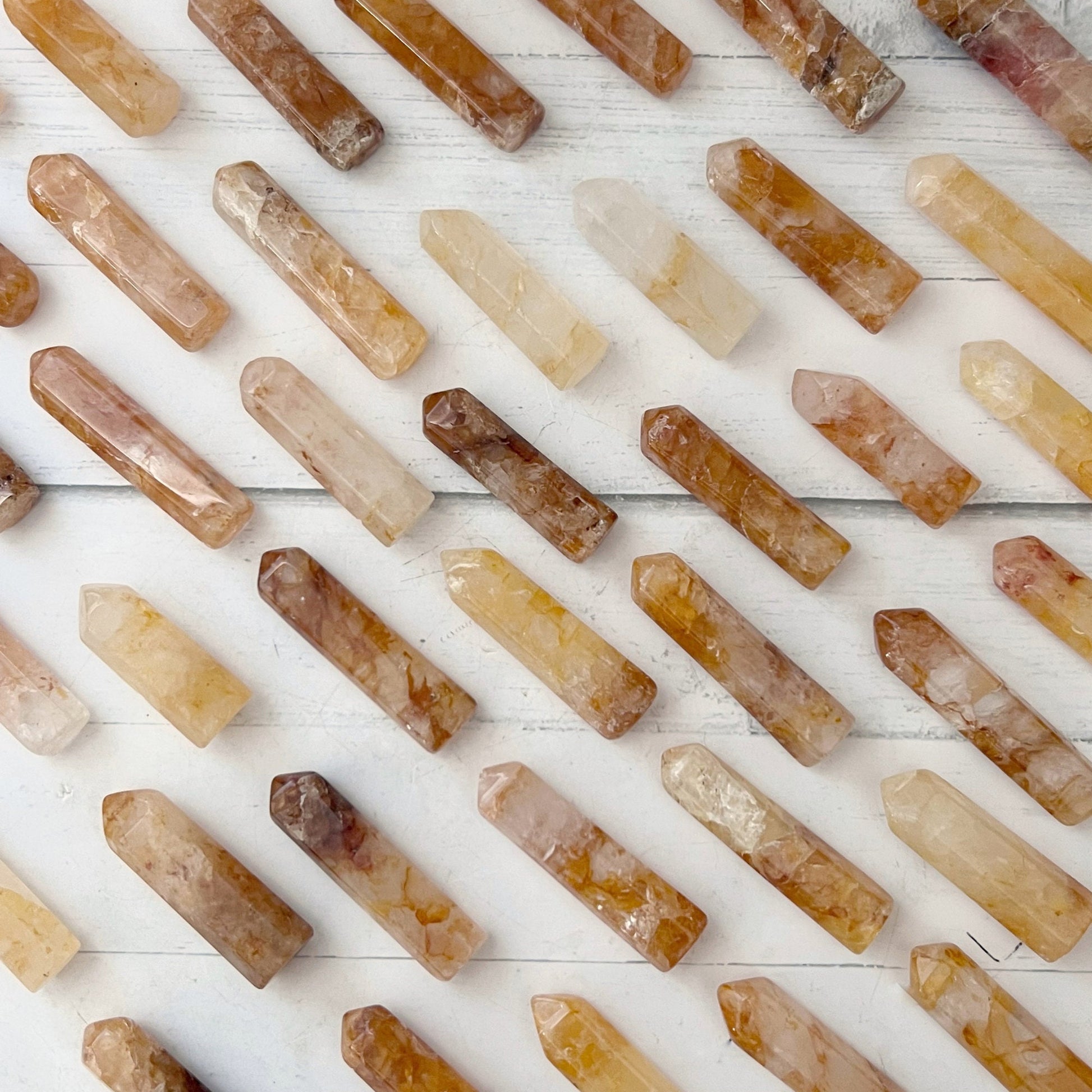 You will receive 1 Golden Healer quartz semi-polished point/obelisk that measures approximately 1-2" in height, most stand upright, but not all. If you need one that stands, please let me know. These are perfect for crystal grids, wire wrapped jewelry making, to use to make your own wand, or as an energy generator.