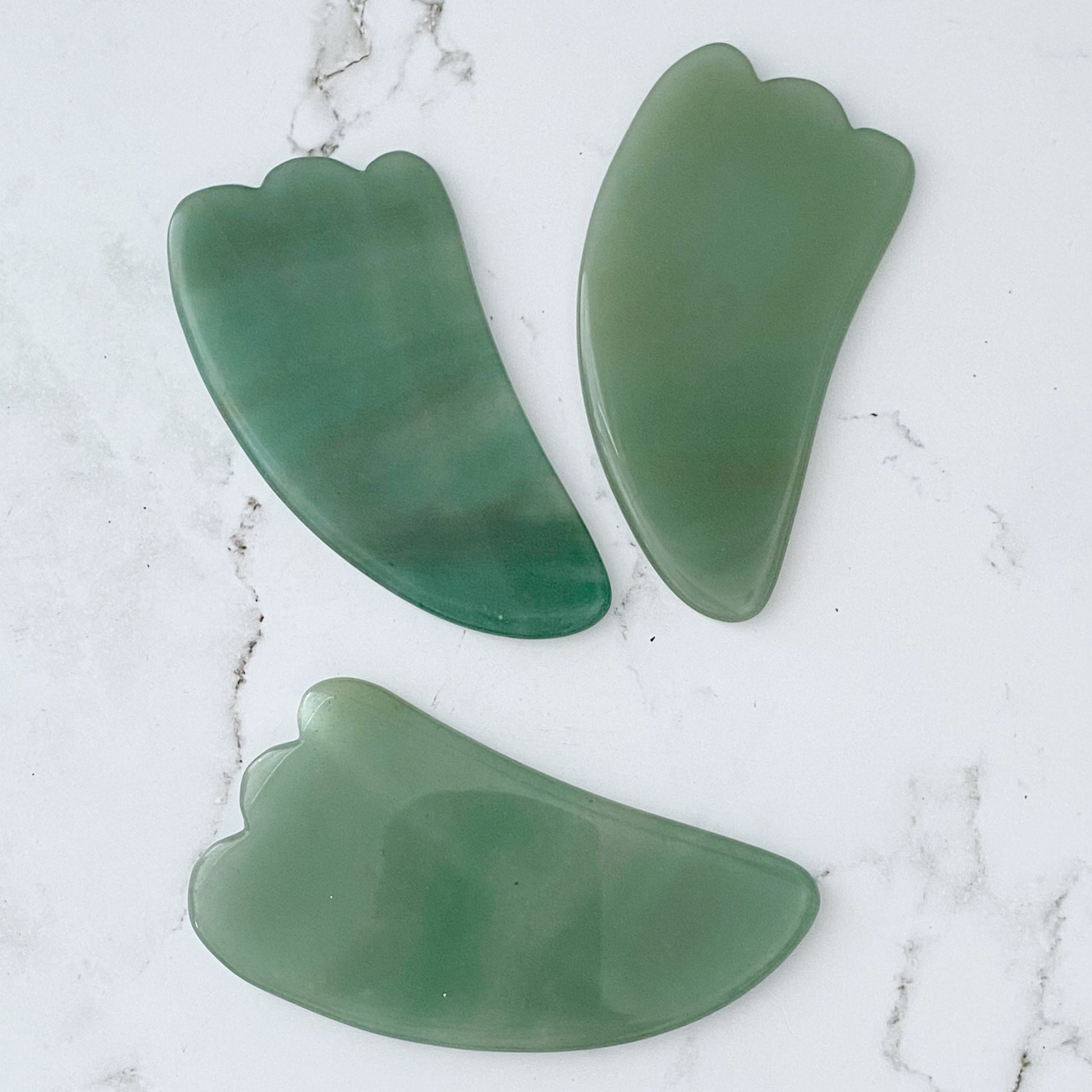 You will receive 1 Polished Green Aventurine Gua Sha Contouring Tool, that measures approx 55mm x 95 mm (2.16" x 3.75")