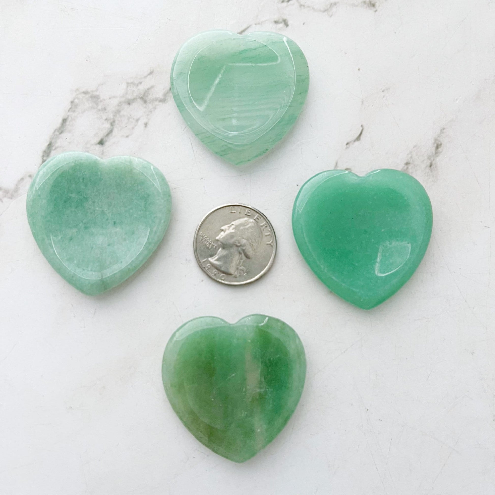 Introducing the Green Aventurine heart-shaped worry stone, a hand-polished gem that serves as a soothing companion for moments of reflection and stress relief. Each stone is intuitively selected, connecting you with a piece that resonates with your unique energy. Measuring approximately 1.5 inches in both length and height, these worry stones are a tactile delight, fitting comfortably in the curve of your hand or pocket.